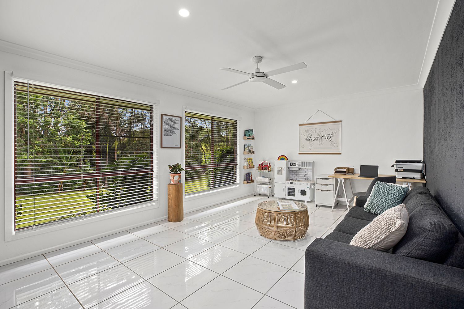 Outside the lawns & gardens have been designed with low maintenance, easy care in mind. Enjoy entertaining with friends from the alfresco area whilst the children are free to run & play in the fully fenced yard or take a stroll along the waterfront reserve to the Kalang River to launch your canoe or a spot of fishing. For those wishing for a pool, there is ample room to accommodate this.
