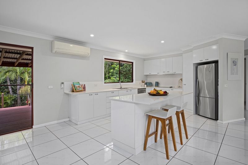 Superbly positioned in Bellinger Keys Estate, on a quiet no-through road with a lovely bush outlook. The single level, solid brick home strikes a harmonious balance between contemporary styling & modern functional living. The home consists of 3 bedrooms, master with ensuite & walk in robe, stylish modern kitchen, open plan lounge, dining & kitchen area complete with air conditioning, tiled bathrooms & a separate family room perfect for the kids or could lend as a 4th bedroom.