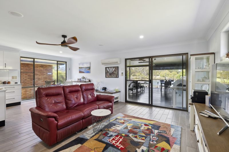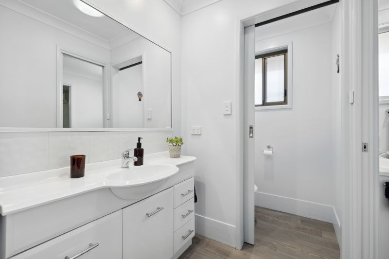 Set on a level 860 sqm block, the drive thru tandem garage and workshop area will accommodate the cars and tools. There is an additional carport for the boat or trailer.