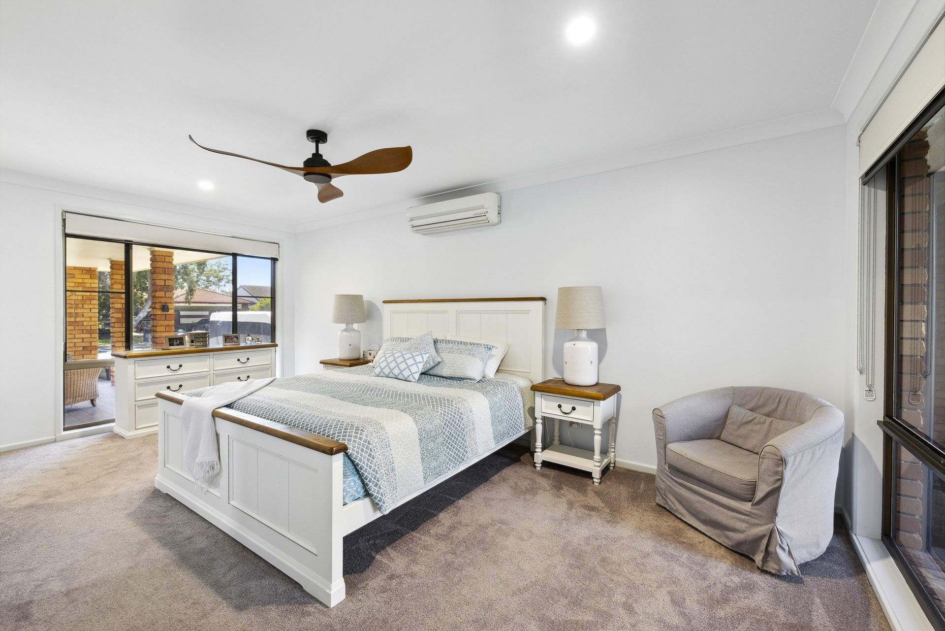 Inside, the home comprises of 4 generous sized bedrooms - all with built in robes and ceiling fans. The master bedroom is elegantly appointed with water views, tiled ensuite, air conditioning and walk in wardrobe