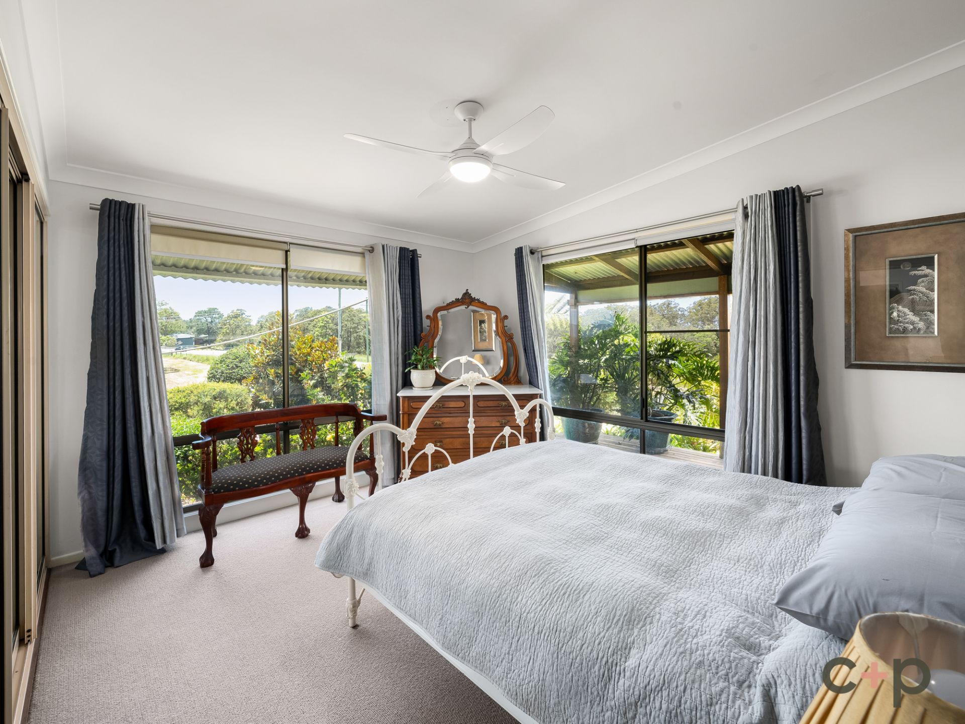Inside, you'll find three generously sized bedrooms, each with built-in robes and ceiling fans, all enhanced by high ceilings that amplify the sense of space. The cozy lounge room features a fireplace, perfect for relaxing on cool evenings while admiring the serene mountain vistas.