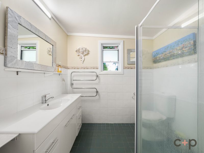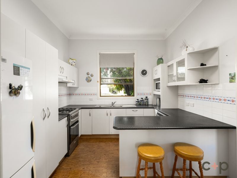 The functional kitchen is well-equipped with a gas cooktop, electric oven, and dishwasher, making meal preparation a delight. Adjacent is a tiled main bathroom and a spacious laundry with the added convenience of a spare toilet.