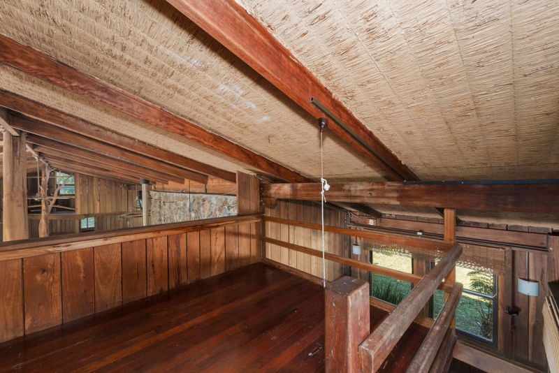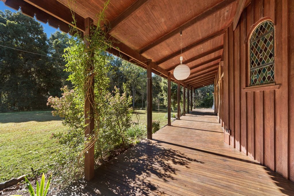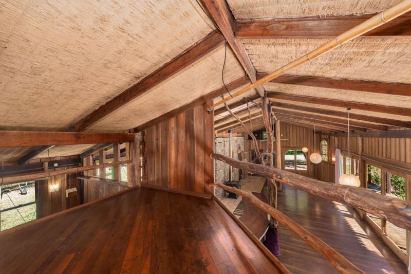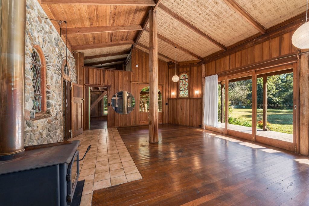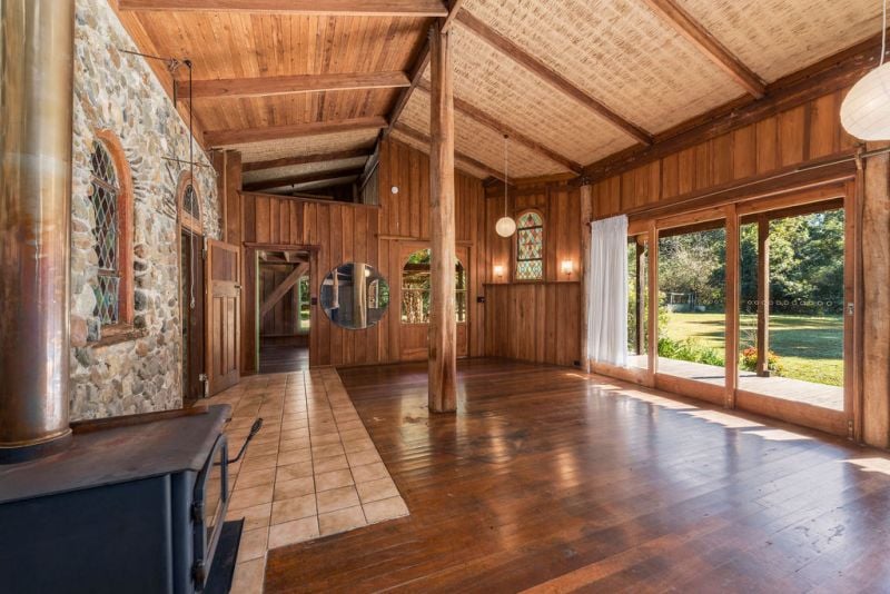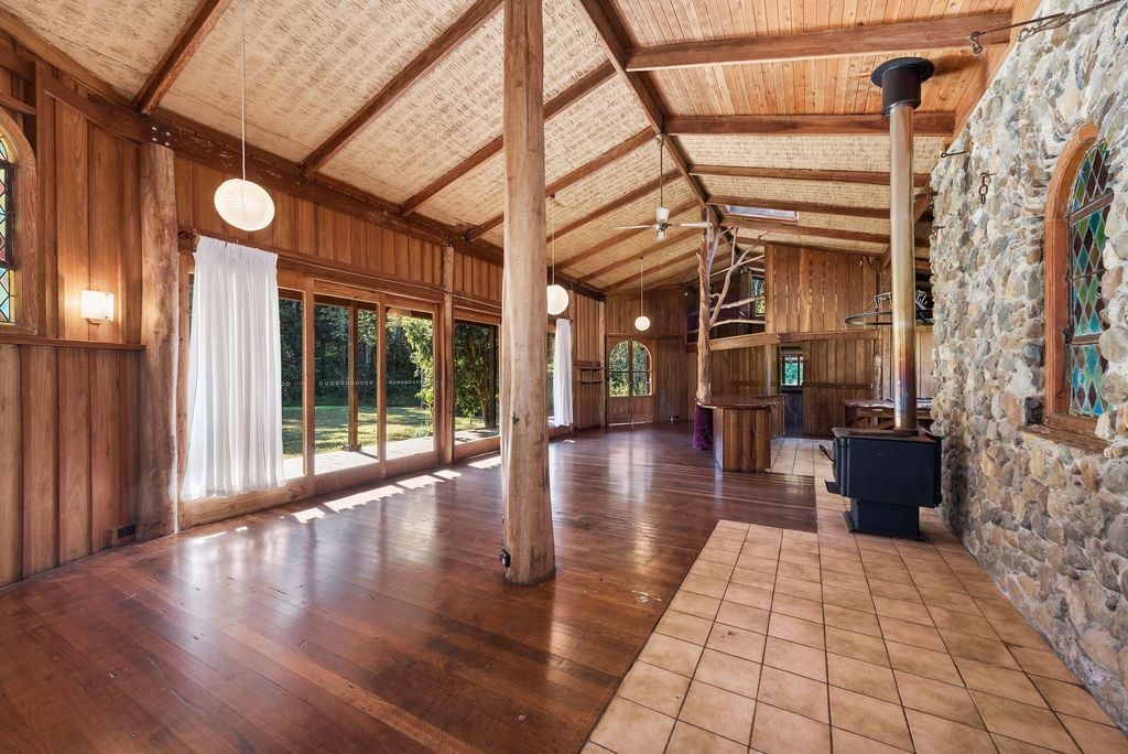 The house is set in a flood-free location, atop the river flats with a delightful sunny setting. The home is unique and offers lots of lovely features, stone feature wall, leadlight windows, exposed timber poles, and it is built with a hardwood frame & has an iron roof. The ceilings are high and raked throughout which give the home a great sense of space.