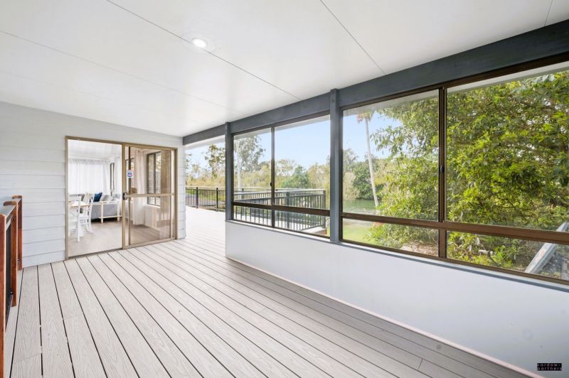 Step inside to discover a stylish renovation, complete with new flooring, paint, curtains, lighting, and ducted air conditioning throughout. The modern kitchen features a dishwasher, electric cooktop, and oven, flowing seamlessly into the light-filled dining area. A formal lounge opens out to the front deck, while the rear entertaining deck provides the perfect vantage point to soak up the tranquil river views. Three comfortable bedrooms, two with built-in robes, are serviced by a tiled main bathroom with separate w/c.