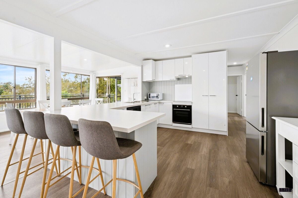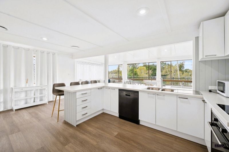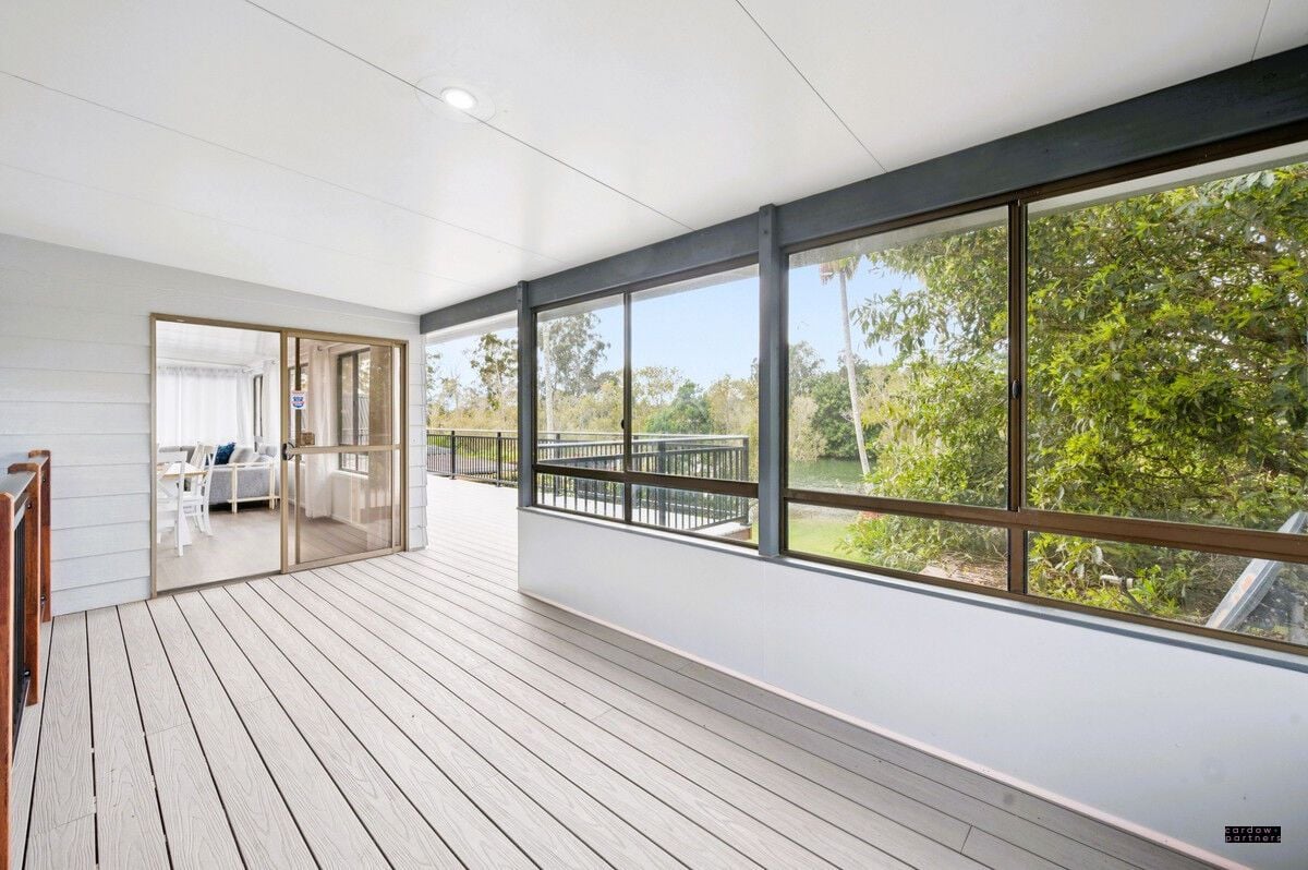 Step inside to discover a stylish renovation, complete with new flooring, paint, curtains, lighting, and ducted air conditioning throughout. The modern kitchen features a dishwasher, electric cooktop, and oven, flowing seamlessly into the light-filled dining area. A formal lounge opens out to the front deck, while the rear entertaining deck provides the perfect vantage point to soak up the tranquil river views. Three comfortable bedrooms, two with built-in robes, are serviced by a tiled main bathroom with separate w/c.