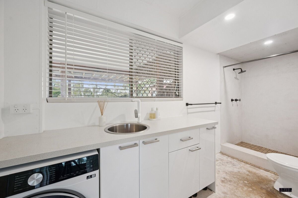 The lower level is ideal for extended family, guests, or teenagers seeking their own space. It features a large bedroom, rumpus room, and a combined bathroom/laundry, all with easy access to the backyard and riverside.