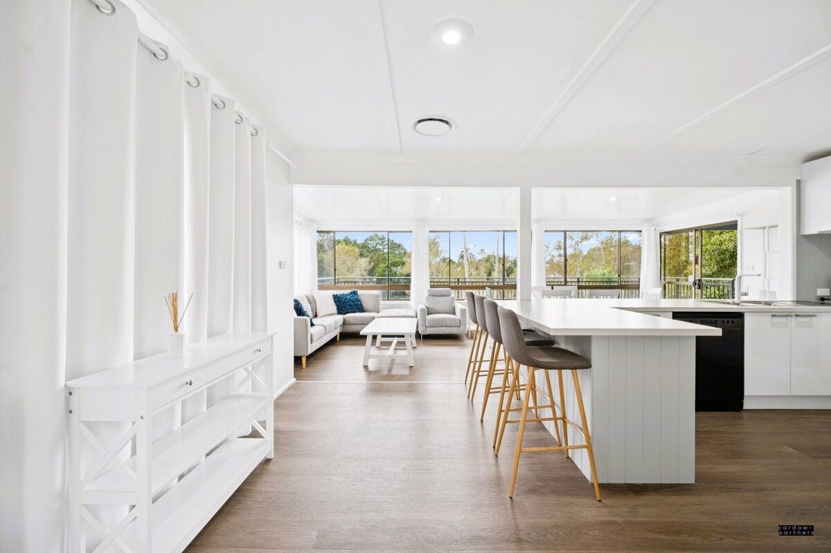 Set on a generous 767sqm block, the home captures stunning river and mountain views, with direct water access at your back doorstep. Whether it's fishing, canoeing, or simply enjoying a riverside barbecue with family and friends, every day here feels like a holiday.