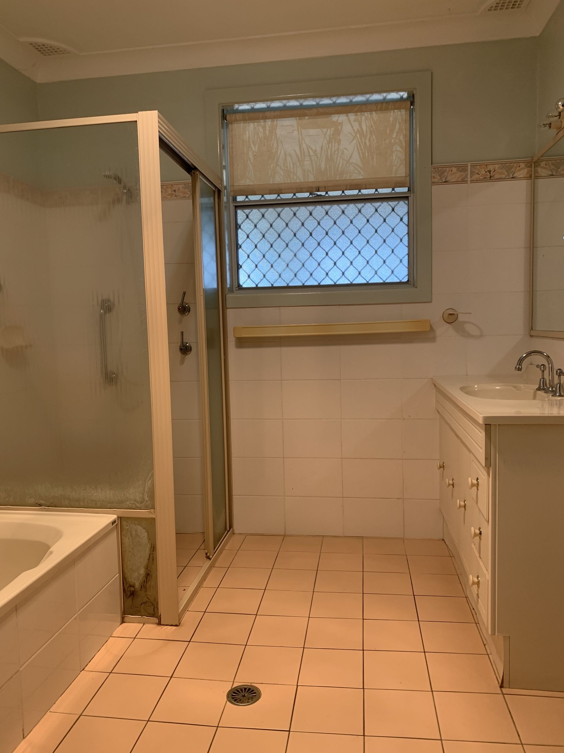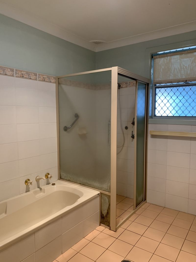 Tiled bathroom with bath and separate toilet, with a second toilet off the laundry.