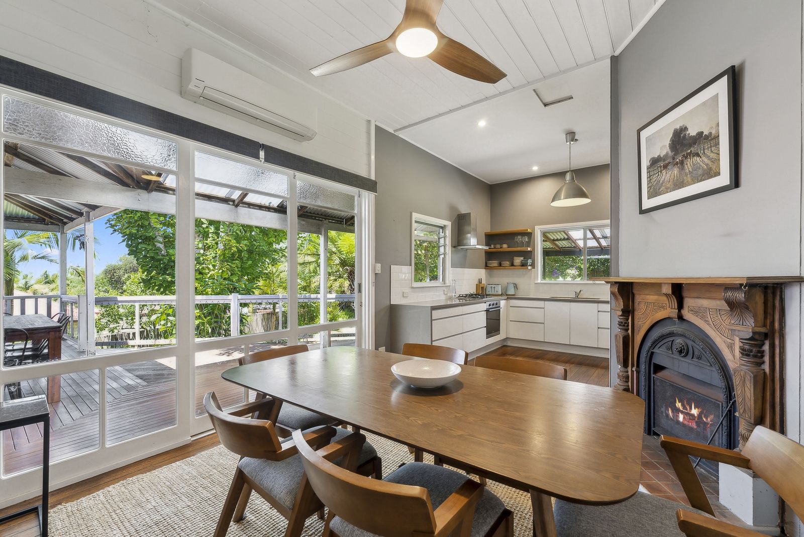 Air Conditioning • Built-ins • Deck • Fireplace(s) • Polished Timber Floors •