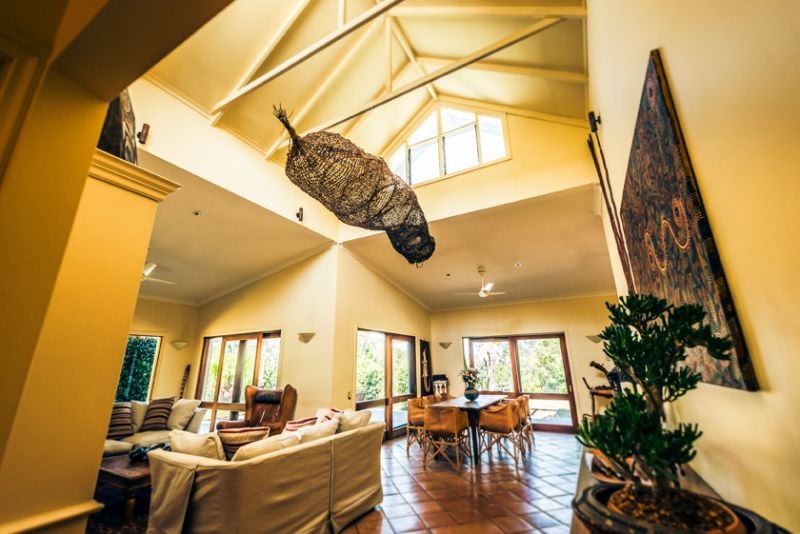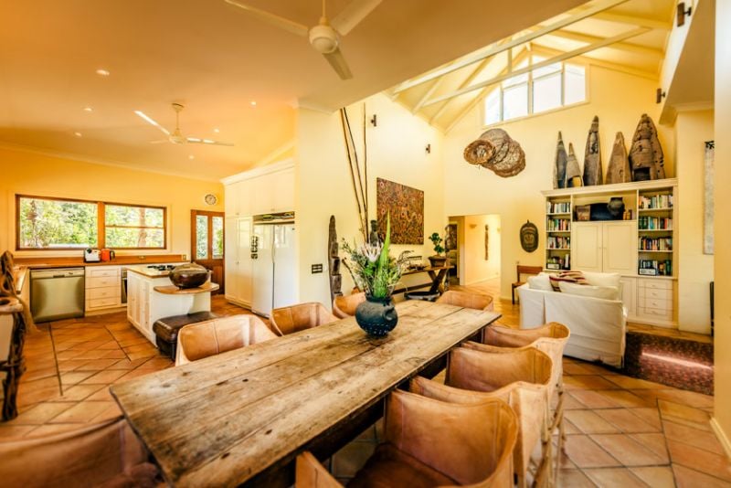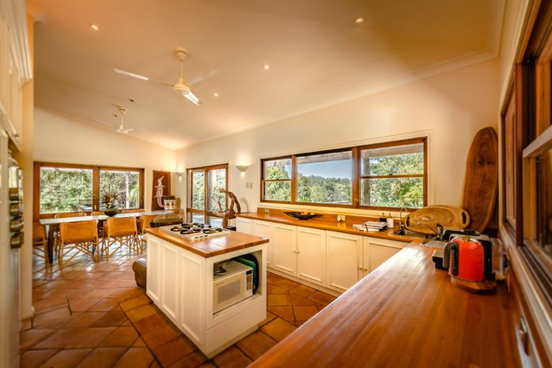 The position and lifestyle features on offer by Kumbaingiri Retreat are without parallel. Referred to as the place of healing, The Retreat boasts the almost 'impossible to achieve' features of large acreage, privacy, spectacular swimming holes, views, wide river frontage where you own BOTH sides of the river, all within just moments to Bellingen's CBD. The 85-acre block is a perfect mixture of light timber on elevated slopes and fertile river flats that would be ideal for stock or cropping or continue with the agistment already in place. Sited at the rear of the block on a secluded elevated ridge the home site takes in a superb aspect overlooking a sparkling swimming hole in the Kalang River to the hills in the distance. The home is stunning, with a generous floor plan, wide verandas on all sides, and exudes a luxurious country style with beautiful contemporary appointments. All this in a location just 3km to Bellingen's buzzing atmosphere, under 20 minutes to some of the region's best beaches and 30 minutes to bustling Coffs Harbour and its well-serviced airport. Can be purchased on a walk-in walk-o