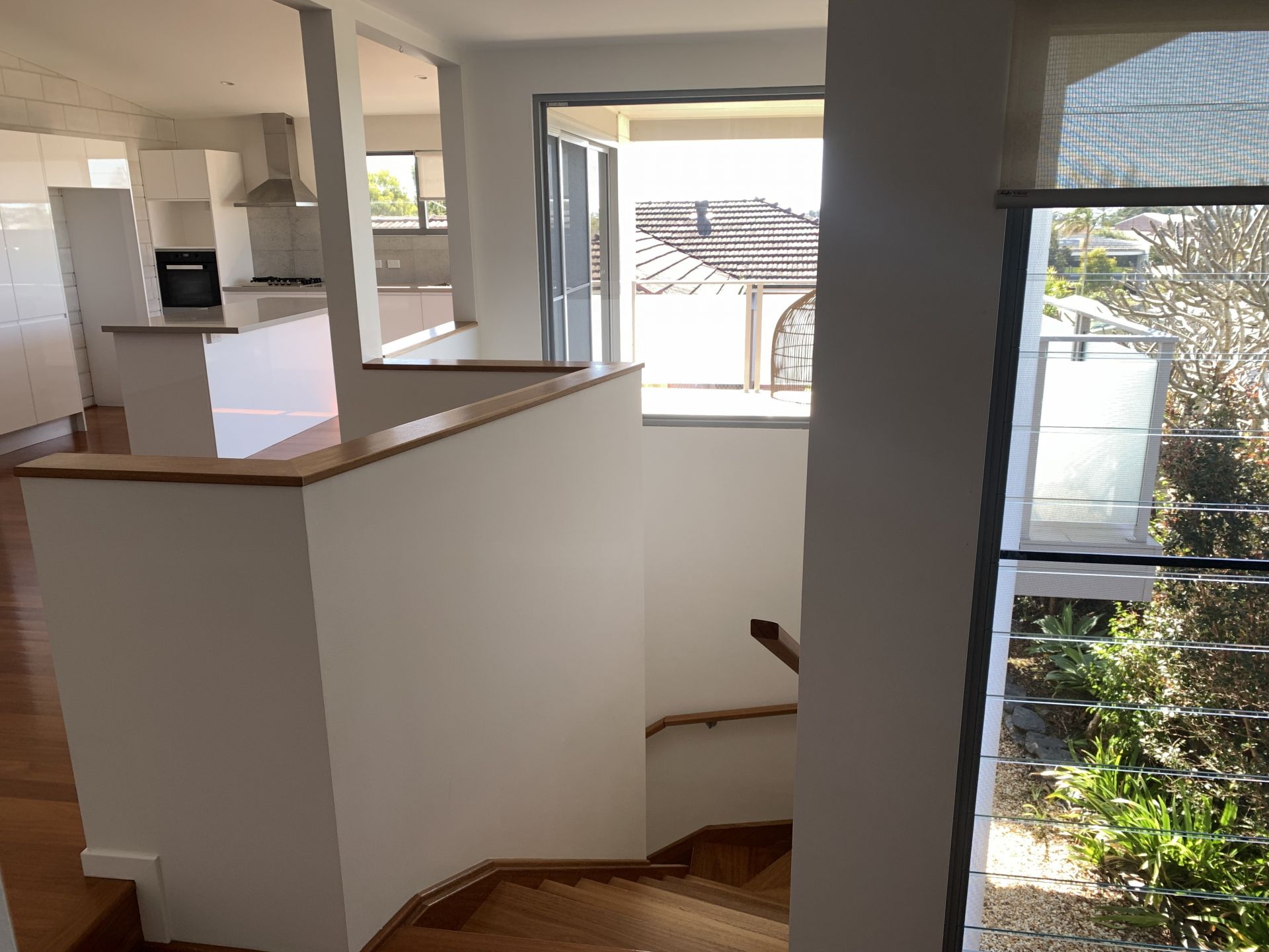 GROUND FLOOR: Open plan kitchen/dining/lounge with polished timber floors with a north facing tiled balcony with ocean views. An entertainers delight! Office nook, powder room, DLUG.
