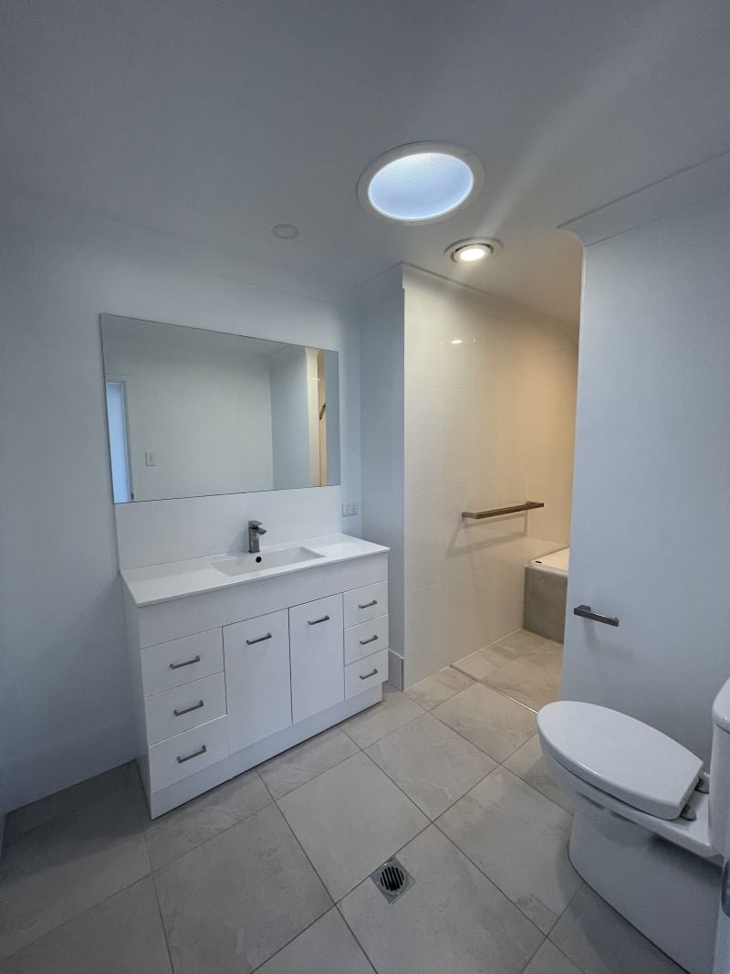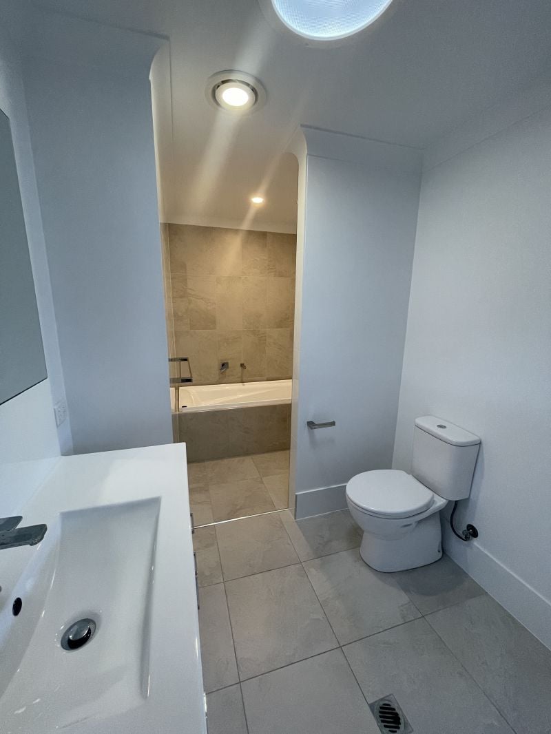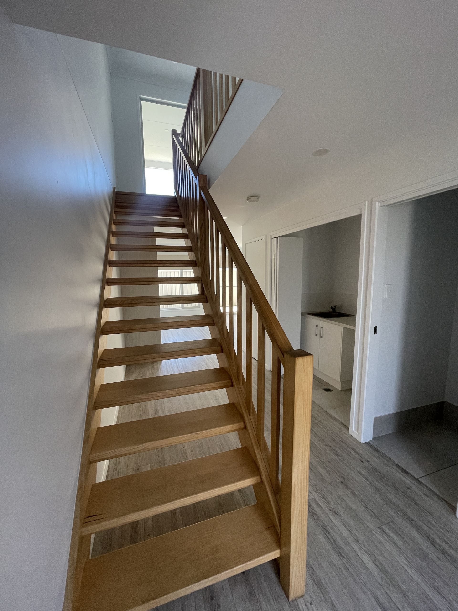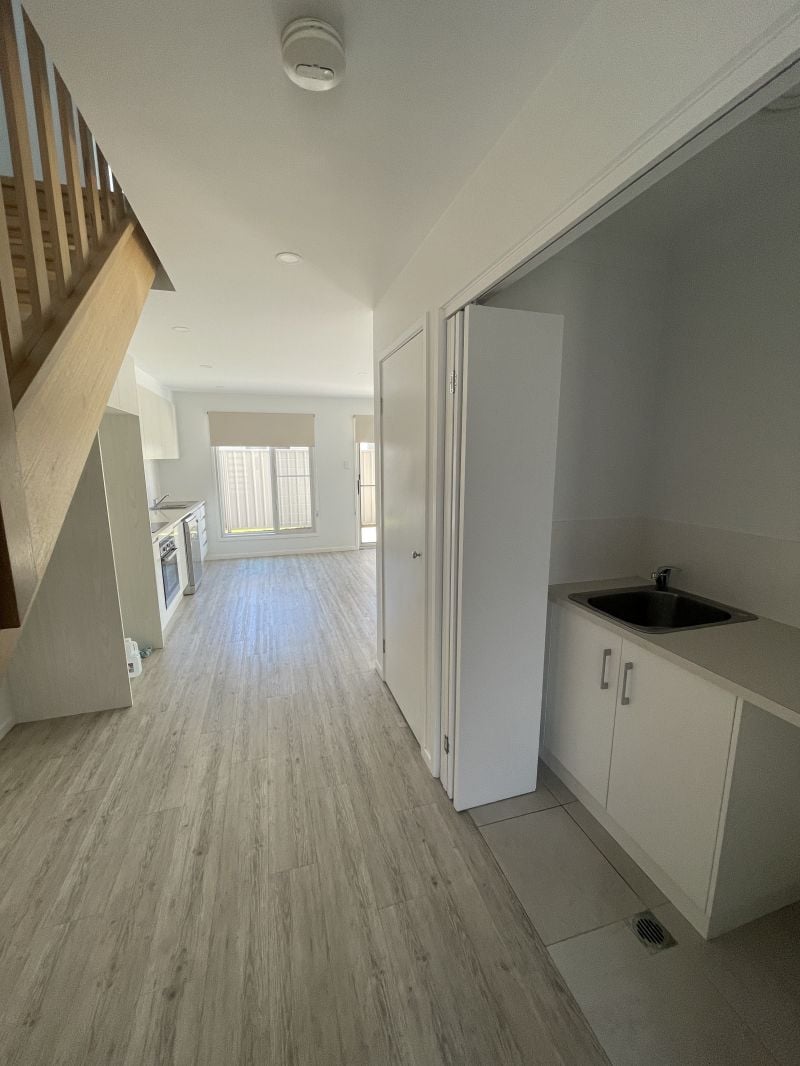 Upstairs - three bedrooms all with built in robes & ceiling fans. Main bathroom & ensuite. Downstairs - combined living & kitchen with AirCon. Kitchen has electric appliances and dishwasher. Tucked away laundry and powder room.
