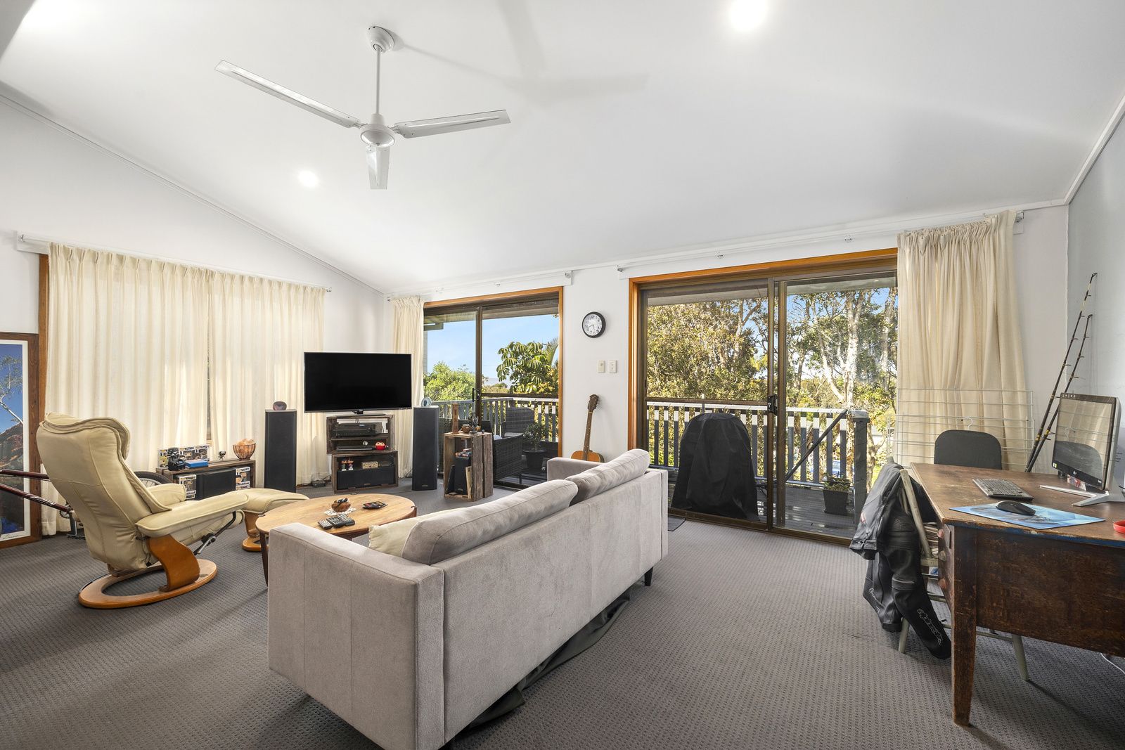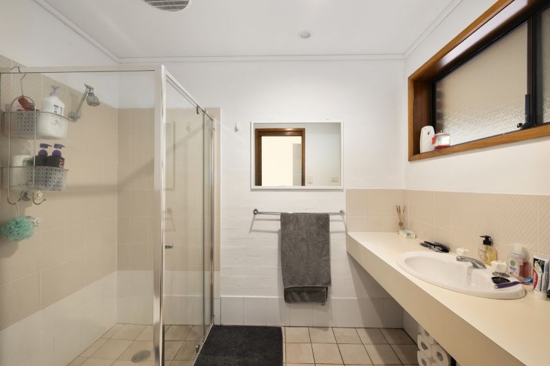 The unit itself features two large bedrooms with air-con and BIR's, good size bathroom, separate large laundry with linen press, and open plan kitchen, dining and living room opening via two sliding glass doors to a deck overlooking paperbark trees and ocean glimpses.