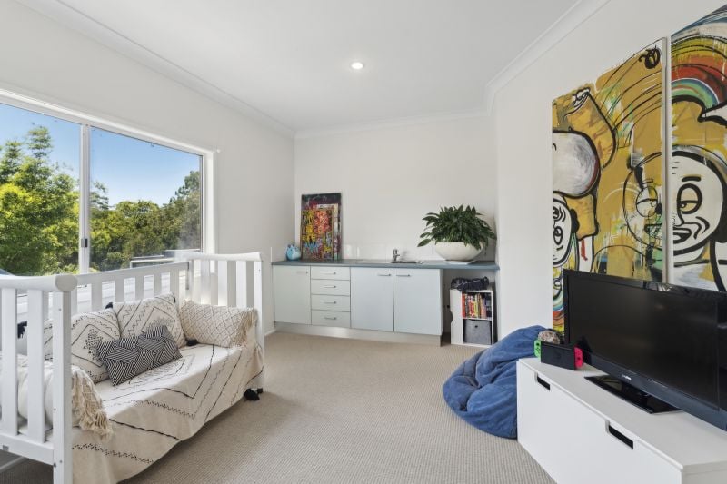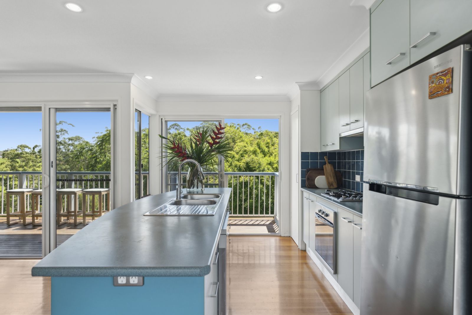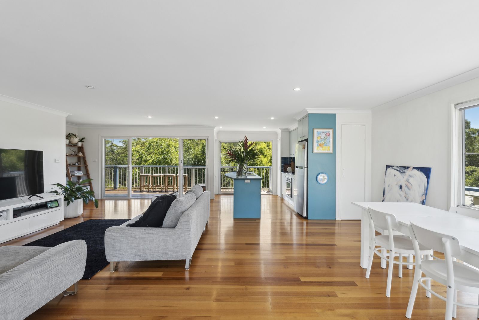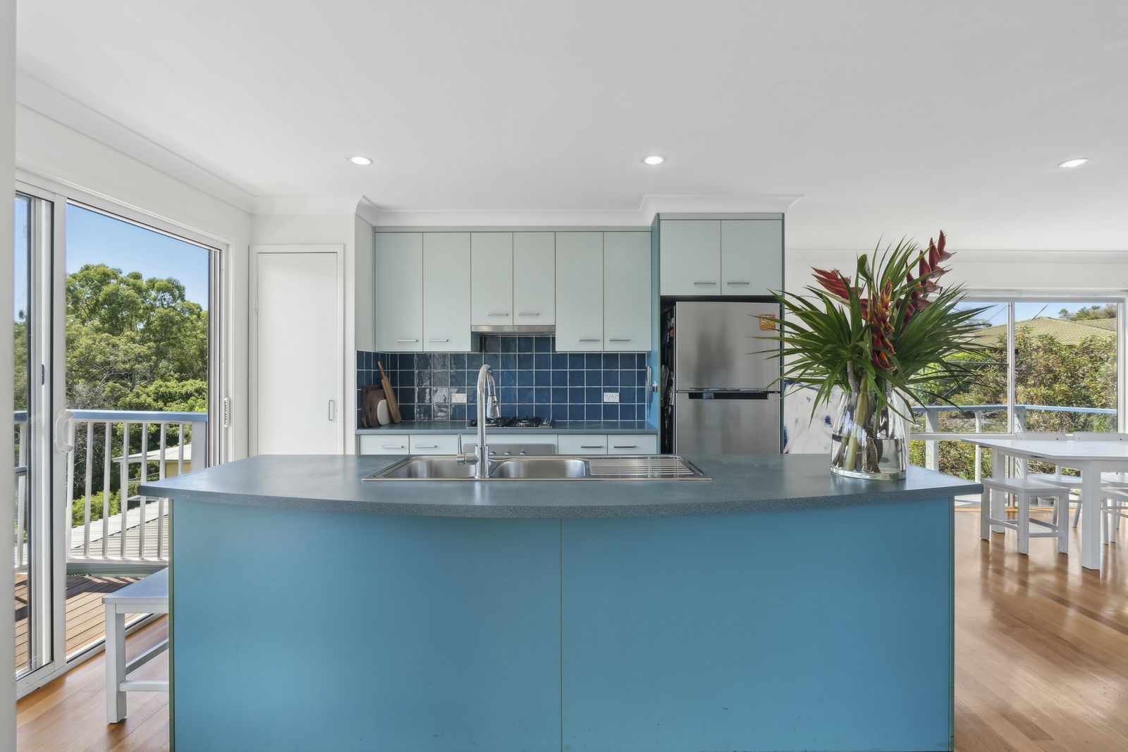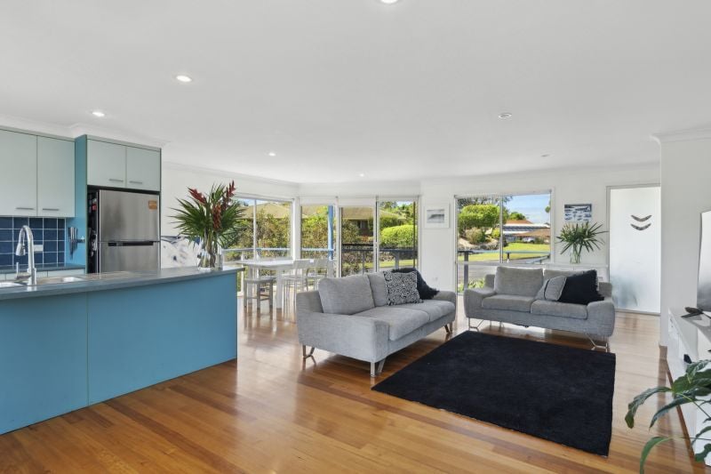 This home stands out with its distinctive design and adaptable layout. It offers four bedrooms and two bathrooms across two levels, ideal for a growing family or hosting visitors. The property has a northern aspect with distant ocean views, allowing it to capture summer breezes and remain warm during winter.