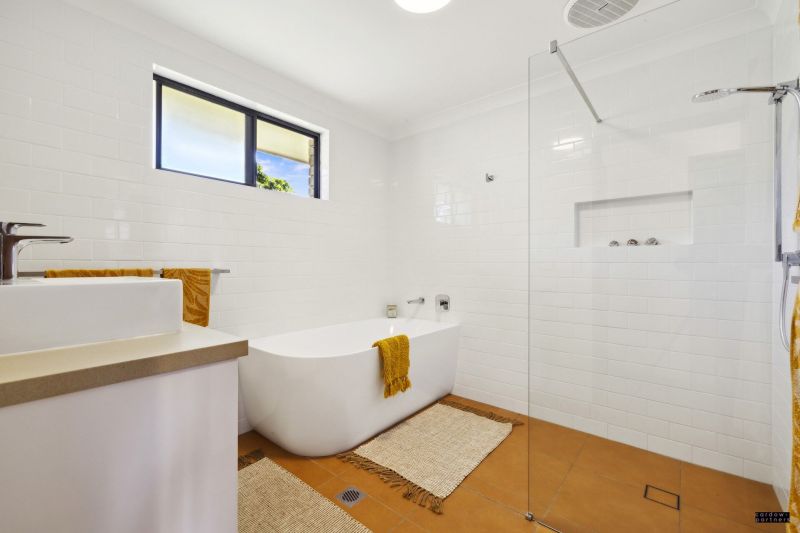 The fully fenced backyard is ideal for families, with space for kids to play, a veggie patch, or outdoor entertaining. Enjoy being just 65m to Maramba Park or a short 500m stroll to the Kalang River.