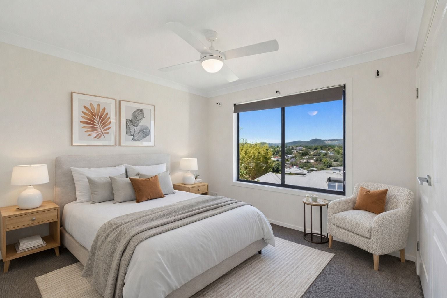 A modern kitchen with gas cooking flows seamlessly to light-filled interiors and stunning hardwood timber floors throughout. Step outside to a covered timber deck perfectly positioned to capture cooling breezes and sweeping valley views-ideal for relaxed entertaining.