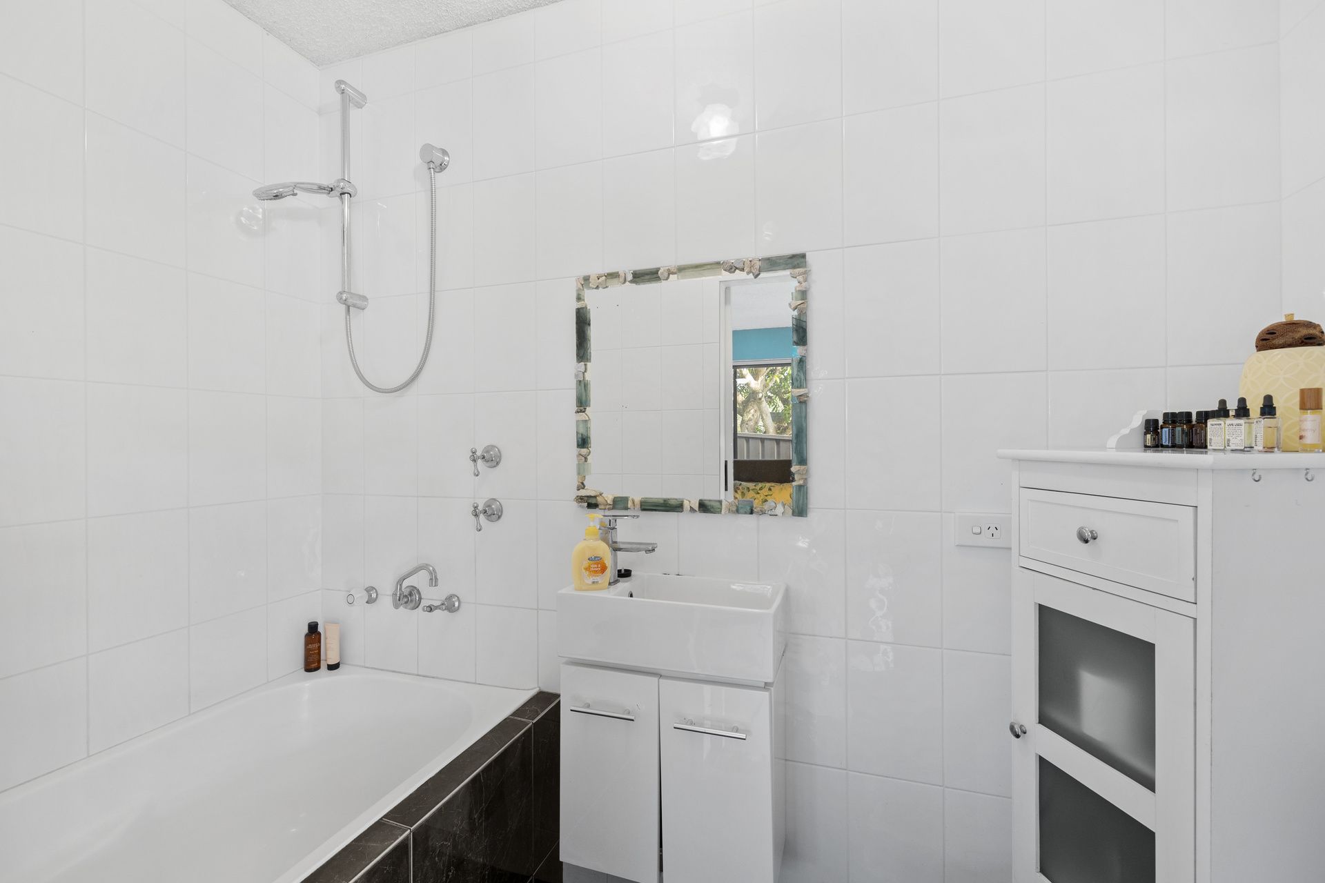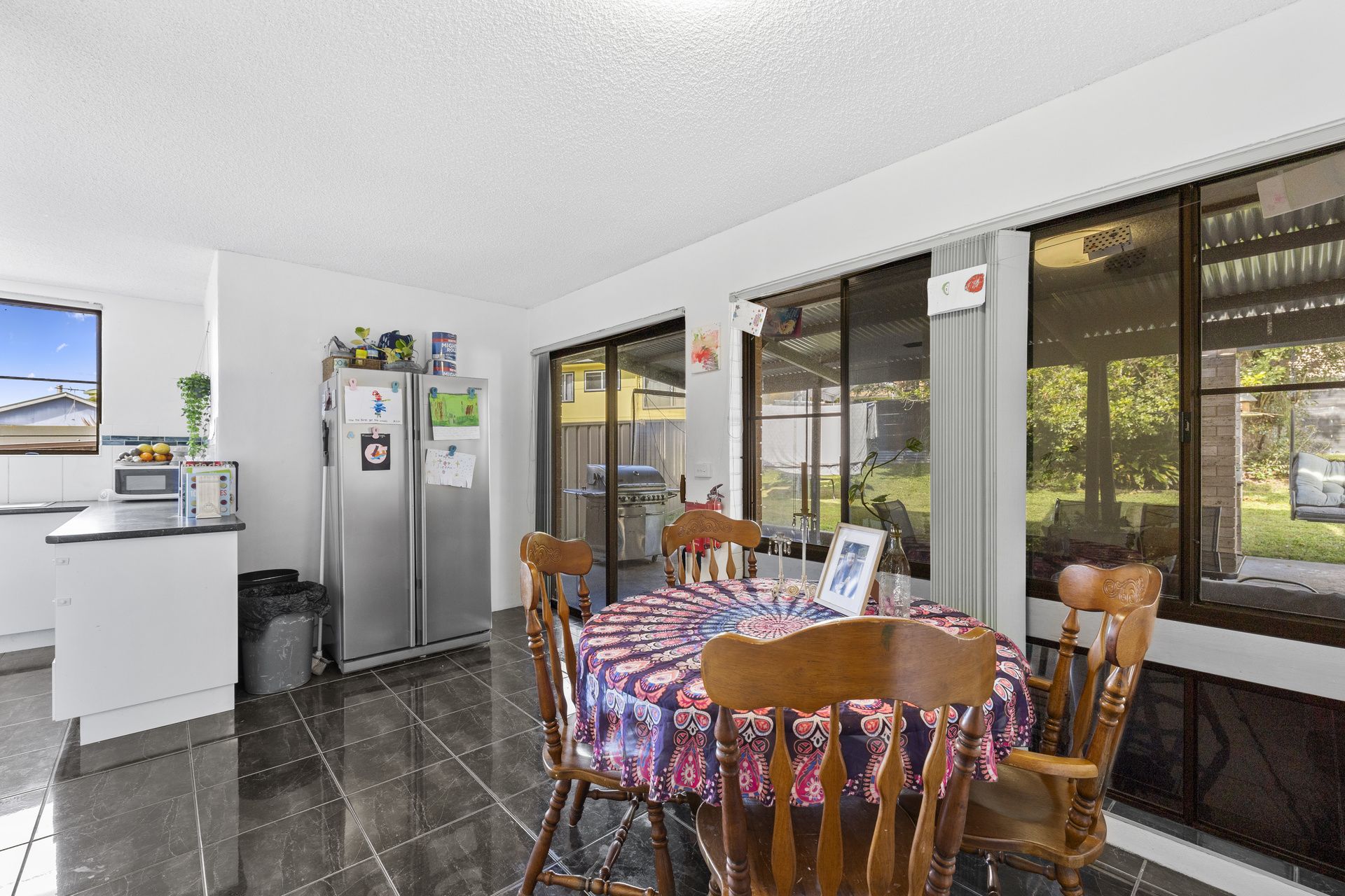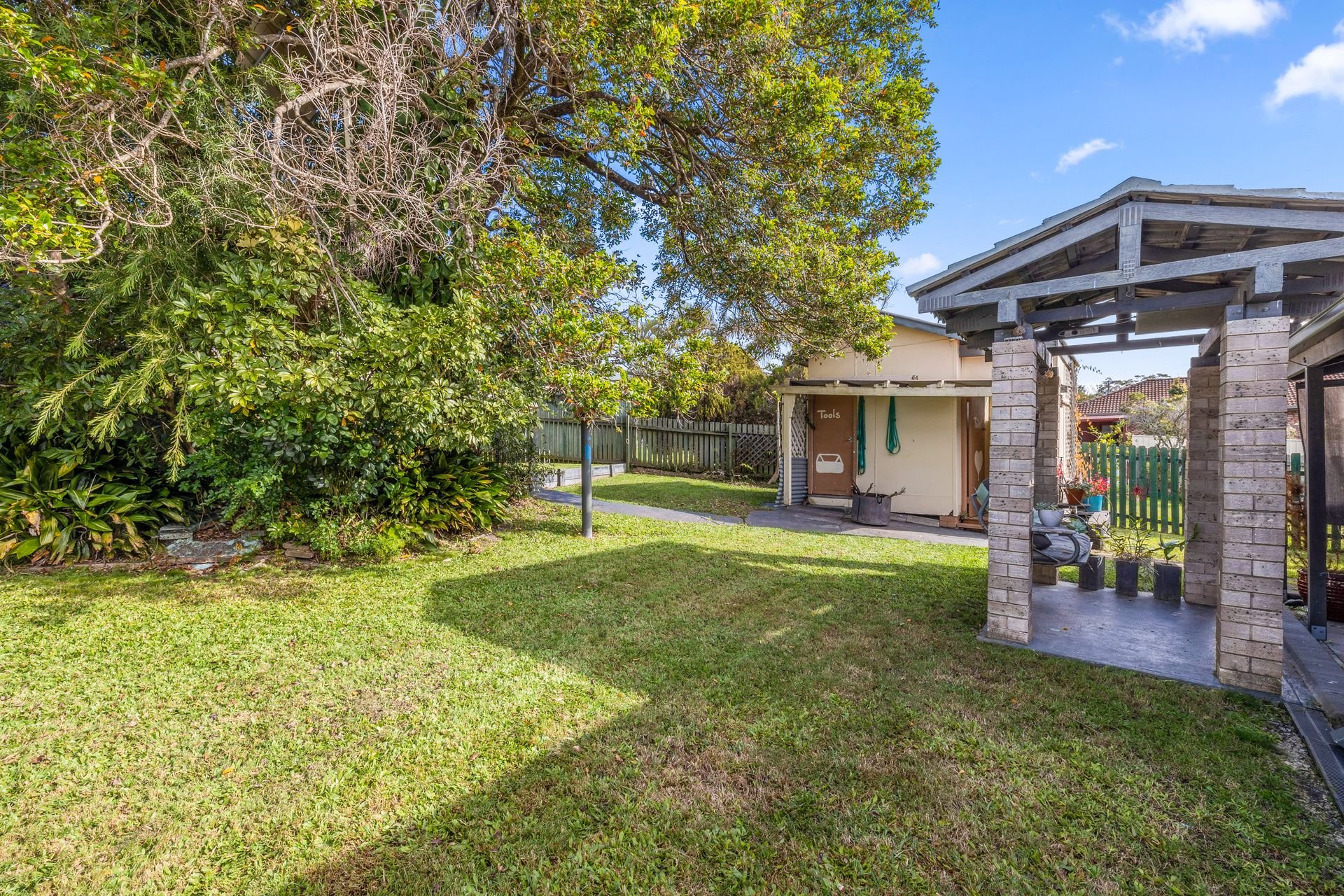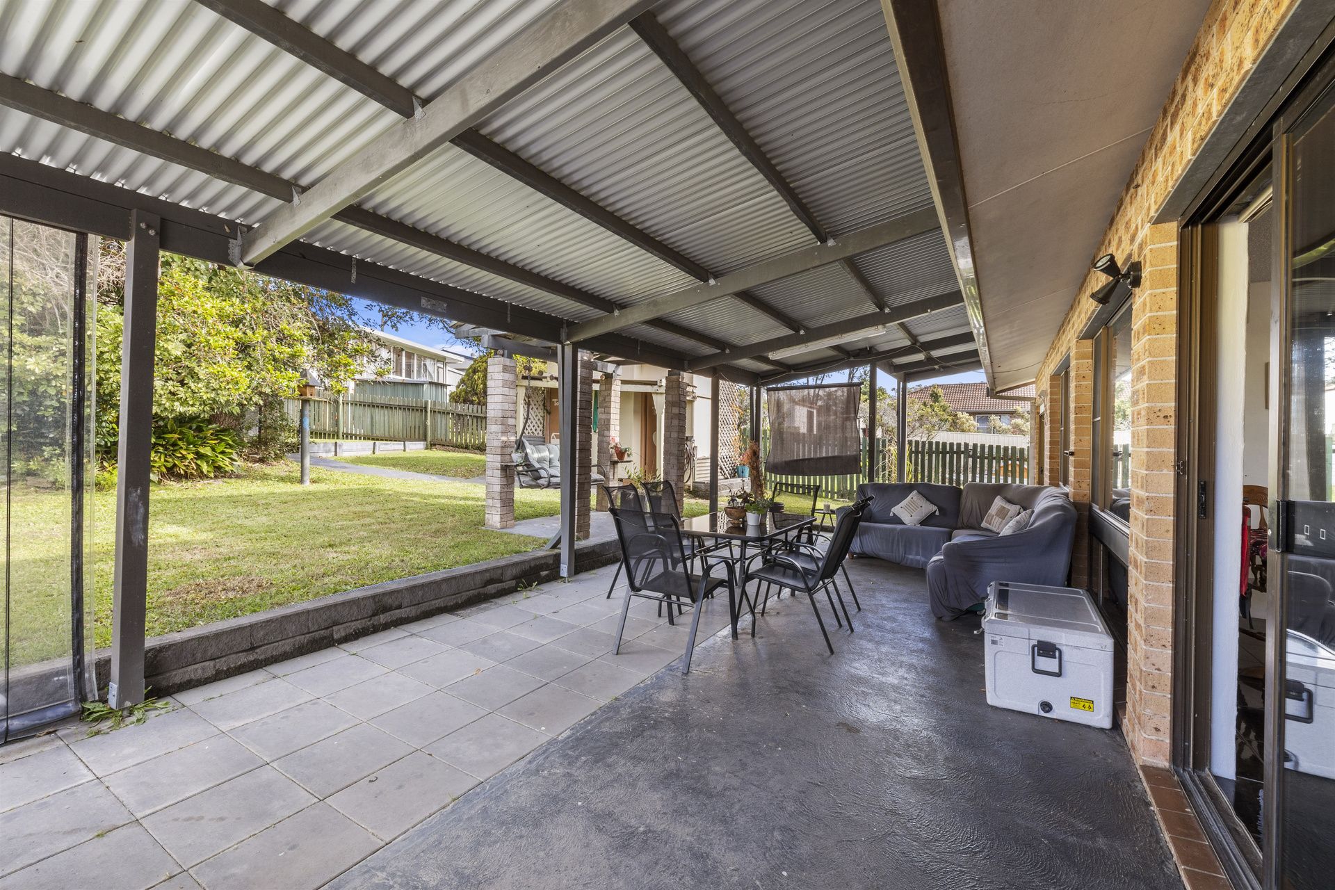 Heading out into the backyard, you will find a covered alfresco area ideal for family barbeques.