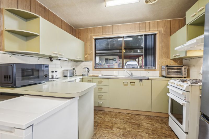 The open-plan layout brings together the kitchen, dining, and lounge areas, creating a comfortable and functional space to enjoy daily life. The original kitchen is complete with a gas cooktop and is conveniently positioned beside the laundry. For year-round comfort, the lounge features reverse cycle air conditioning, while both bedrooms include ceiling fans and built-in wardrobes for added practicality.