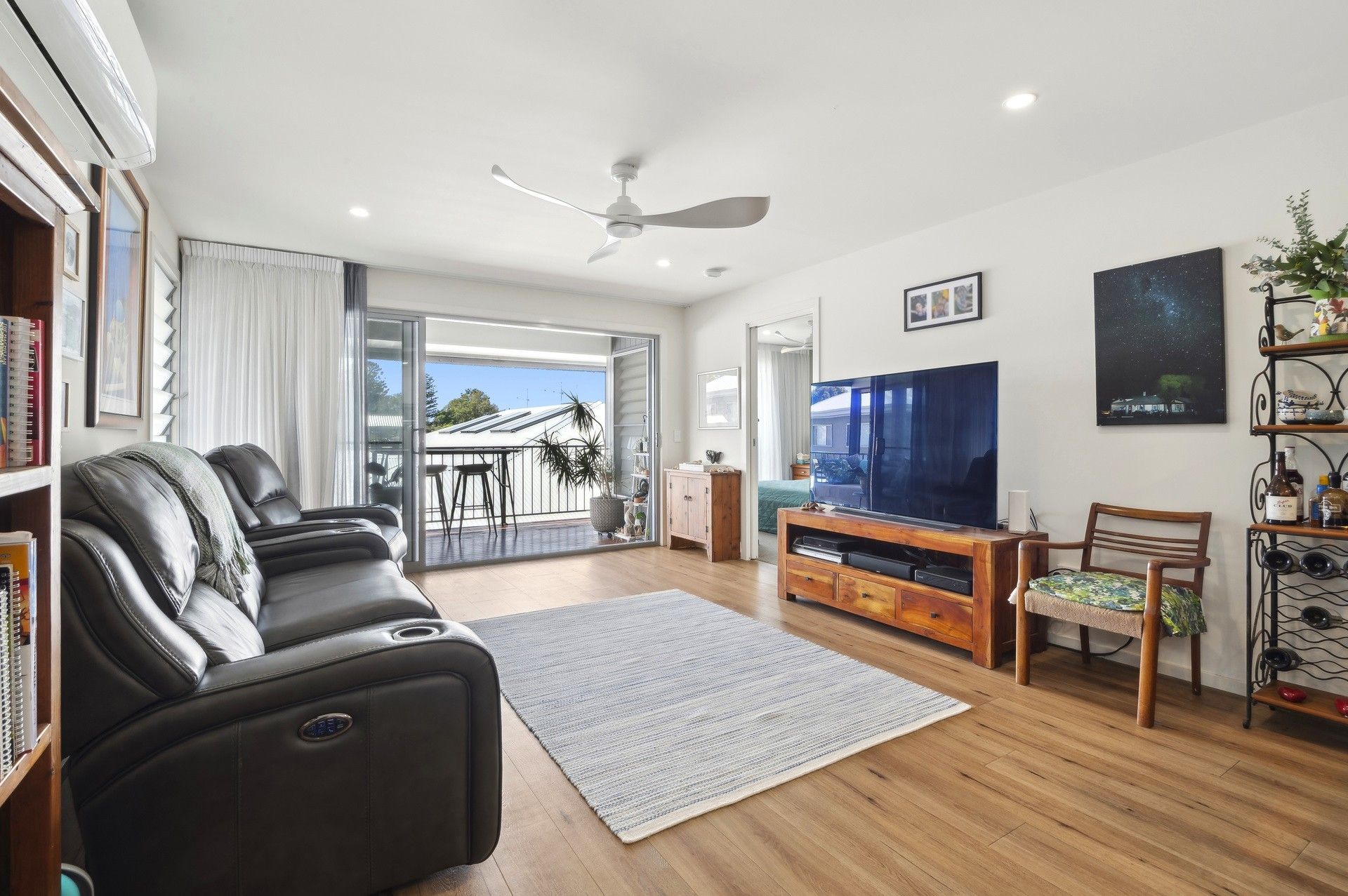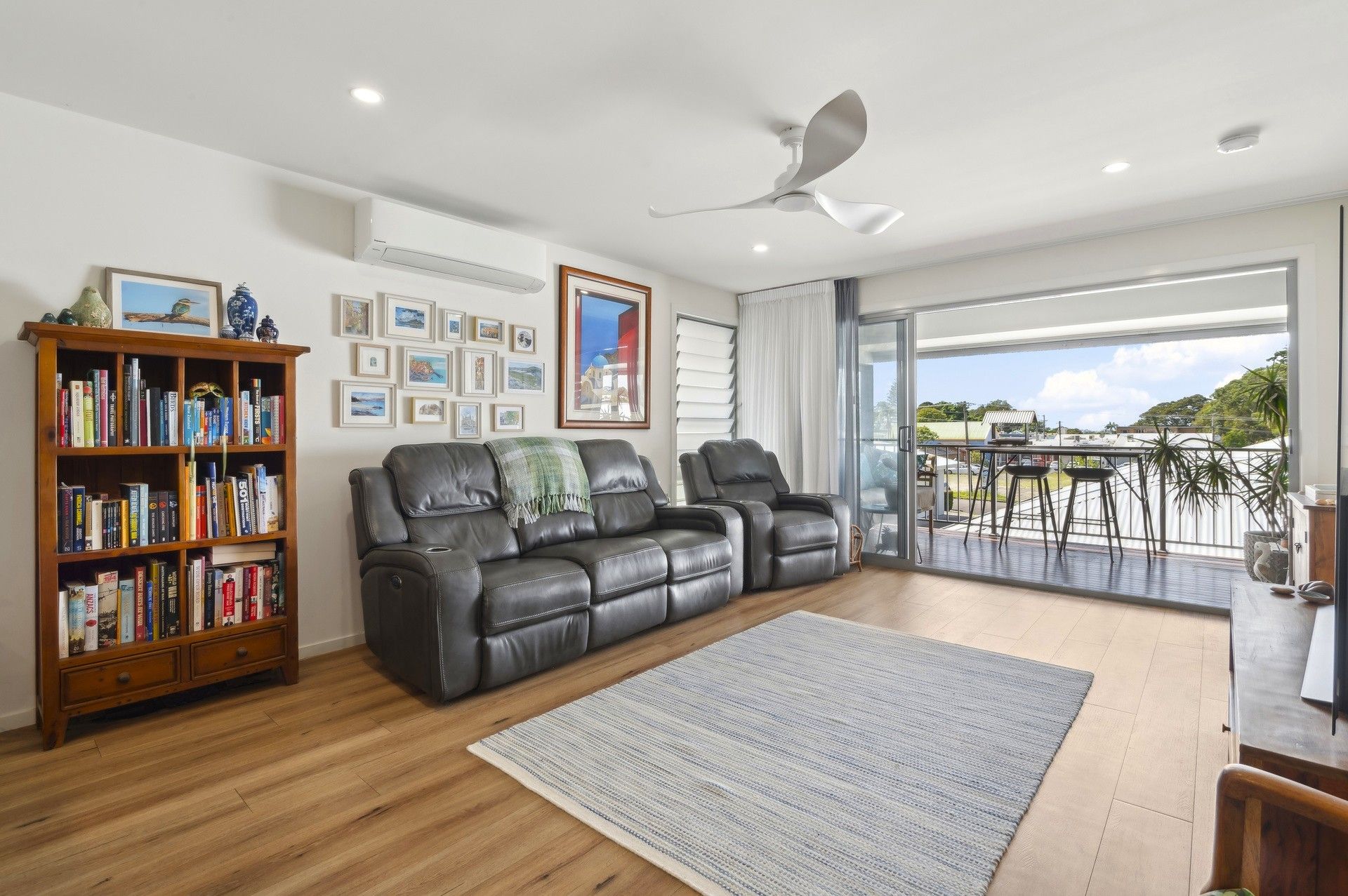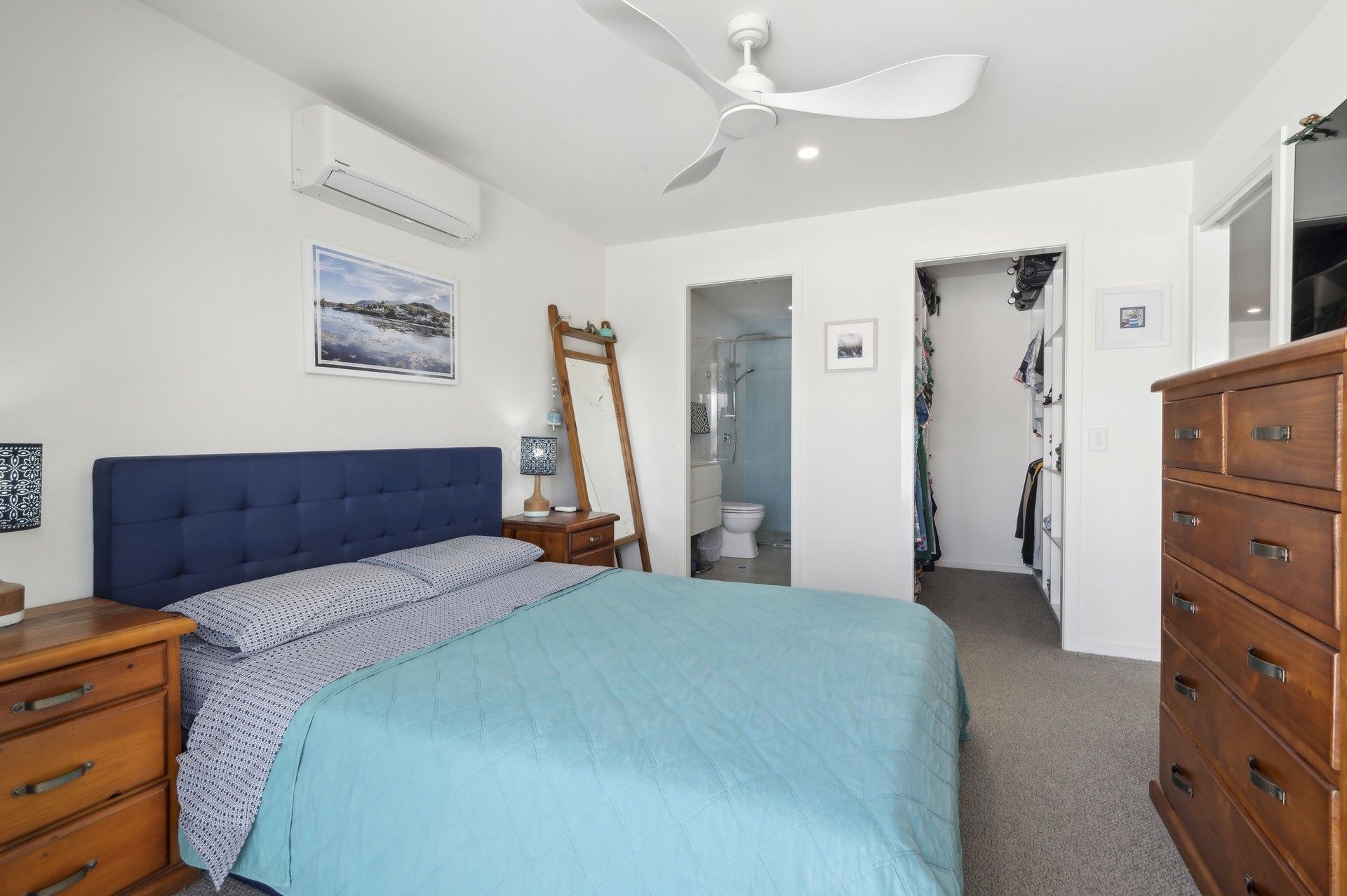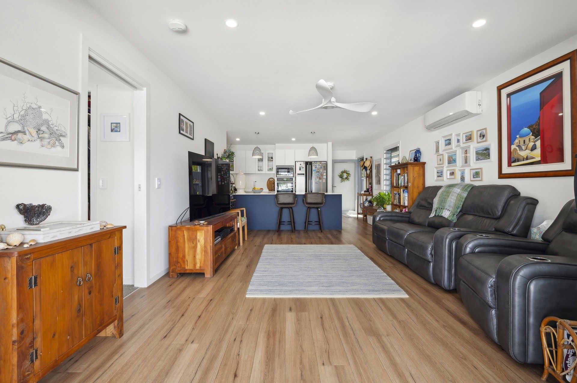 The master suite, also on this level, is a private retreat complete with reverse-cycle air conditioning, a walk-in robe, and a sleek ensuite.