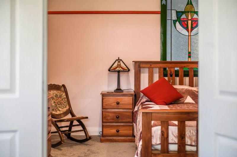 Off the hall, we find bedroom 1 (4.8m x 3.5m) which is a great size with ceiling fans, air conditioning and a feature stained glass window. Bedroom 2 (3.6m x 2.9m) also comes with ceiling fans.