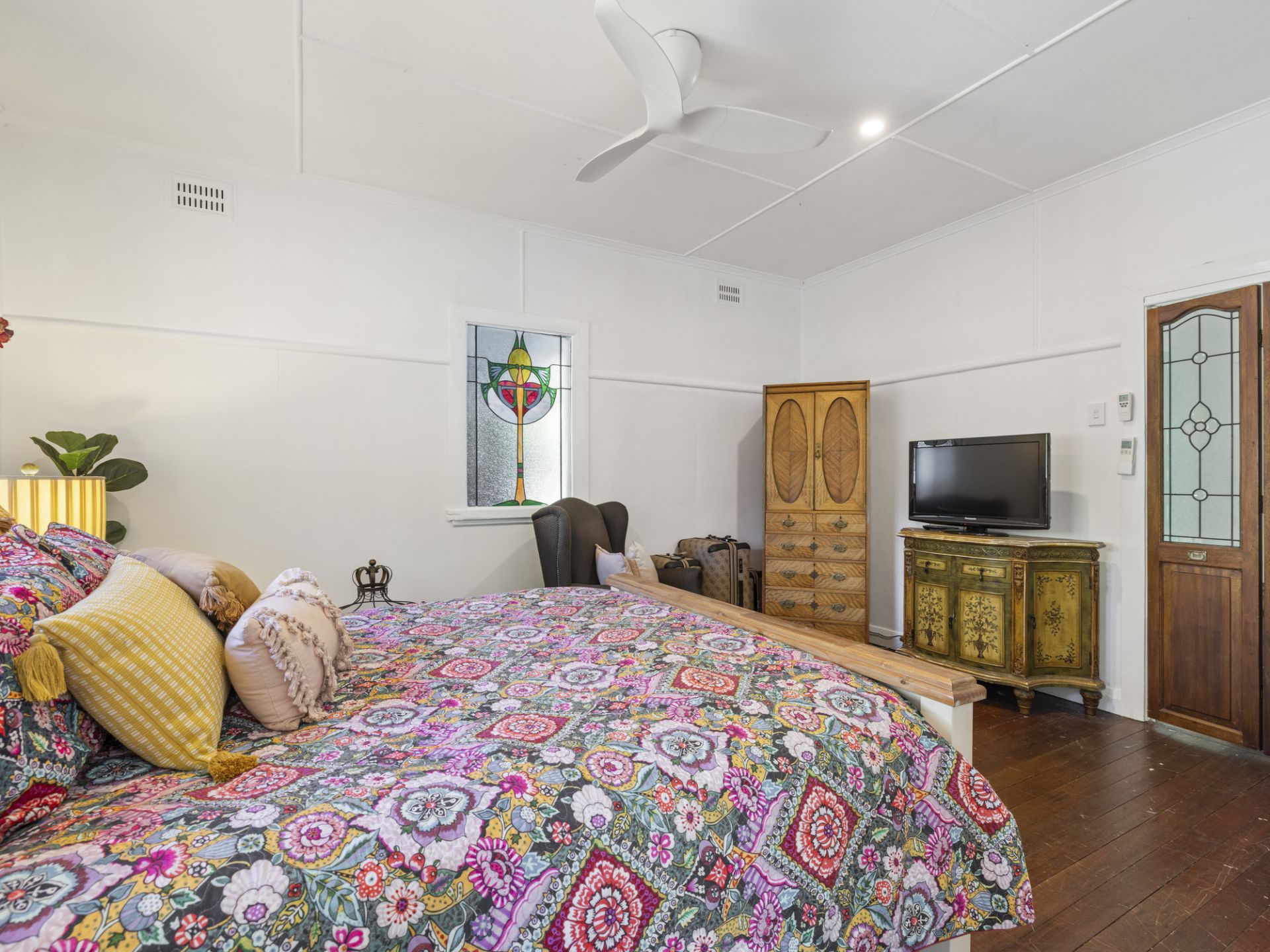 This beautiful weatherboard and fibro home is just 450 metres from the heart of town and showcases the hallmarks of its era gone by, from fretwork, high ceiling, leadlight, french doors and hardwood timber floorboards. The floorplan features a lounge room with A/c, kitchen/dining, two bedrooms and a sunroom room with the potential to design a WIW or ensuite. Also included is one bathroom, two toilets, a single lock-up garage, a covered verandah with a utility/home office and is fully fenced on a low maintenance 374.5m2 block. This property presents a rare opportunity to reside in a charming location, exuding old-world character, and is the perfect spot for AirBNB.