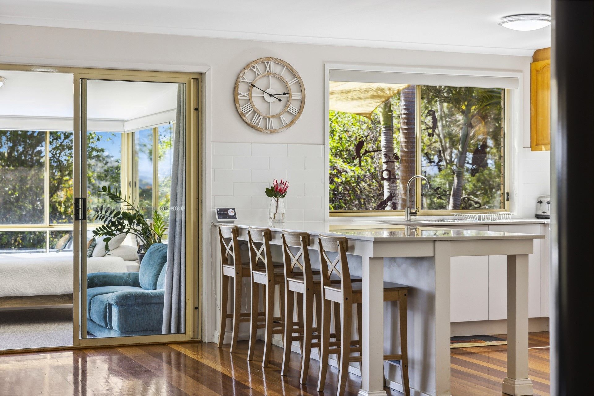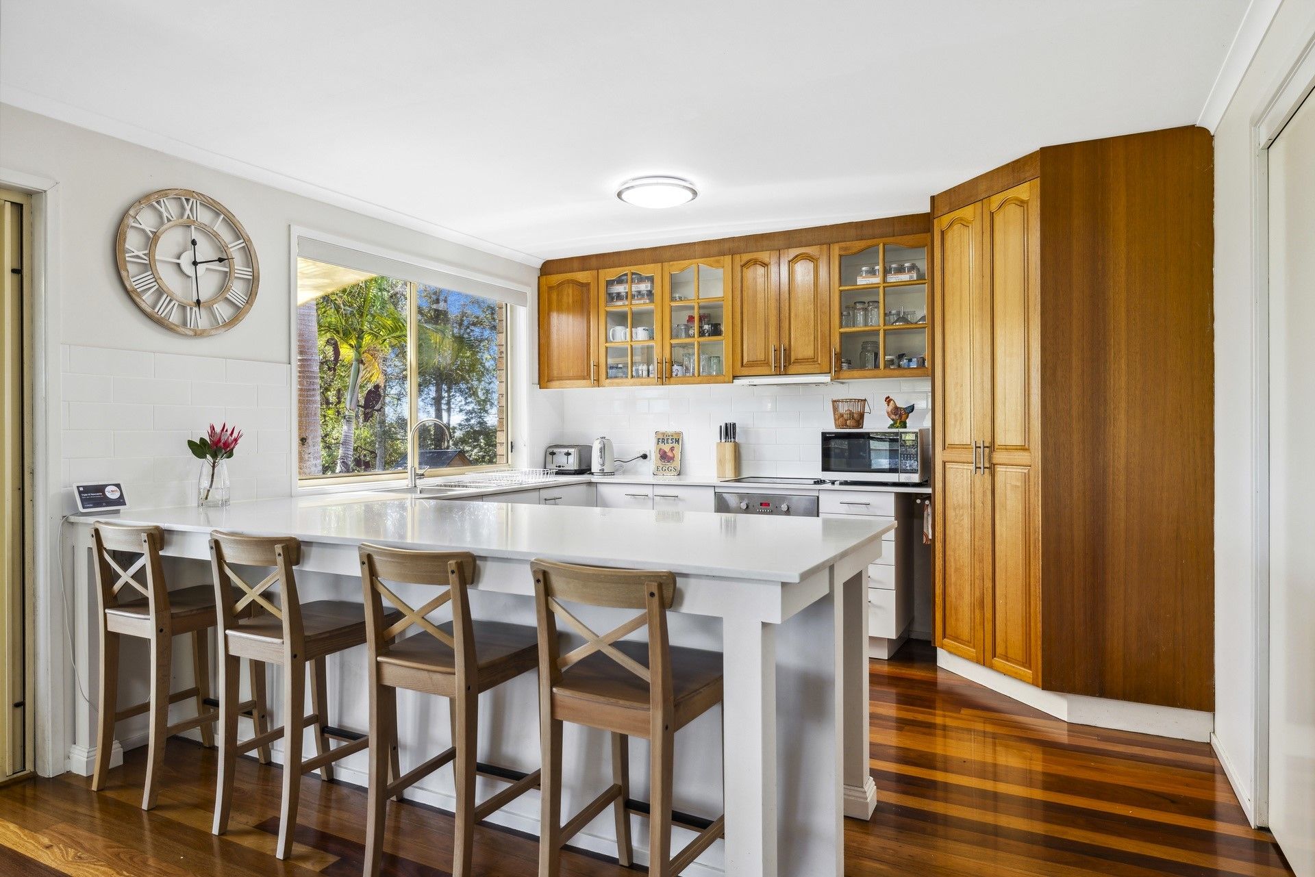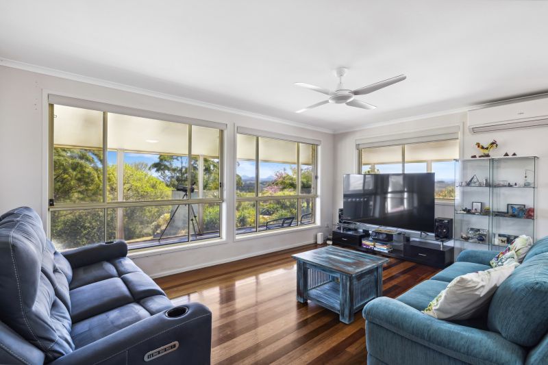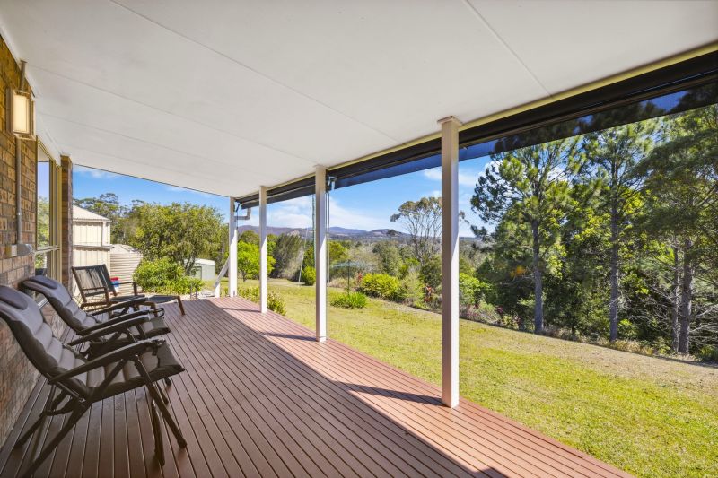 Encompassing 360 degrees of glorious mountain & hinterland views, this property is the ideal escape to the country. Elevated to capture the cool ocean breeze and set on 1.89 ha of land. The homestead offers a spacious open plan living area with large light-filled windows to enjoy those stunning views, complete with air conditioning, warm timber floorboards & cozy fireplace. The renovated kitchen with stone benchtops will be the centrepiece for family gatherings, where the kids can enjoy playing in the enclosed air conditioned "Queensland Room" on the northern side of the kitchen area. This area also provides the perfect hobby/sewing room or accommodation for extra guests to stay.