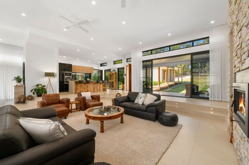 Built to the highest quality with attention to every detail, you will immediately be impressed with the spacious open plan living area with sunken lounge room, cozy fireplace & high ceilings. Large bi-fold doors incorporate the outdoors in, with quality Tonka Timber decking overlooking a peaceful bush setting.