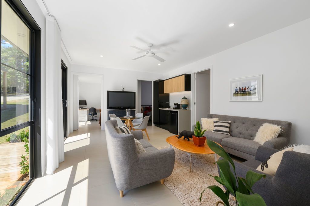 At the other end of the home there are a further two bedrooms, study, second living area including kitchenette and 2 way bathroom. Configured so that your guests or family have their own space and privacy.