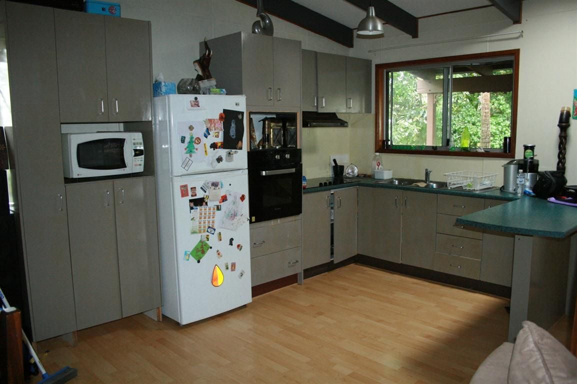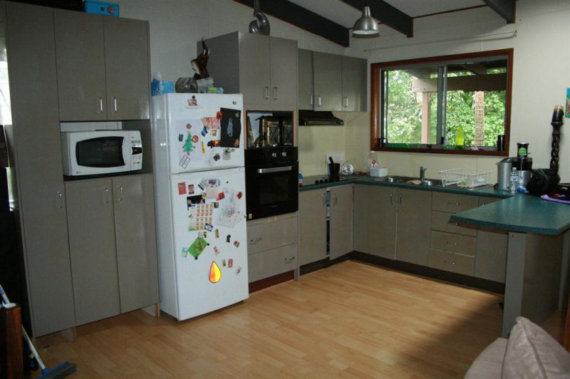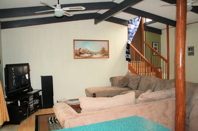 This home has a warm inviting feel with open plan design with kitchen dining & living areas in one good sized space. At some stage the kitchen has been modernized along with raked ceilings & exposed timber poles this house has its share of character.