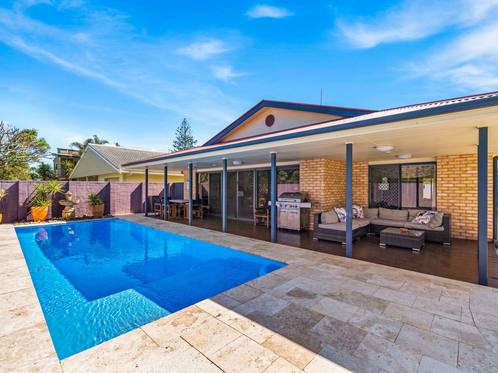 It's not difficult to see why Mylestom has boomed in popularity. Beautiful white sandy beach one side and kilometre's of the pristine river on the other, walk to both, what more could you want! 23 Beach Parade offers the rare opportunity where you have a spacious modern five bedroom + office family home in this highly sought after location. The home boasts a sensational heated mineral concrete pool with travertine tiles and outstanding sun-soaked entertainment areas. There is a 14kw ducted air conditioning system servicing the house, plus a good size 5kw solar system. At around 6m x 12m, the garage has enough room for two cars and a boat. Whether it's water skiing, fishing, swimming, boating, surfing, whatever your water sport, the lifestyle on offer here is sure to impress. Patrolled beach, riverside swimming pool, coffee shop, tennis court just to name a few facilities are all within short walking distance. If it's an investment you are after, a luxurious holiday pad or your own beachside home, this brilliant property won't last long and is sure to impress!