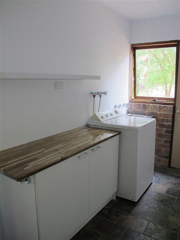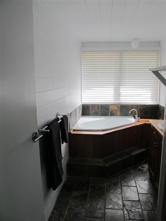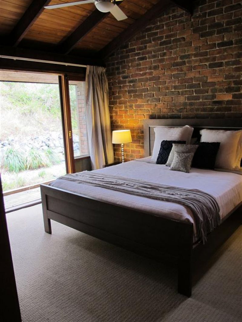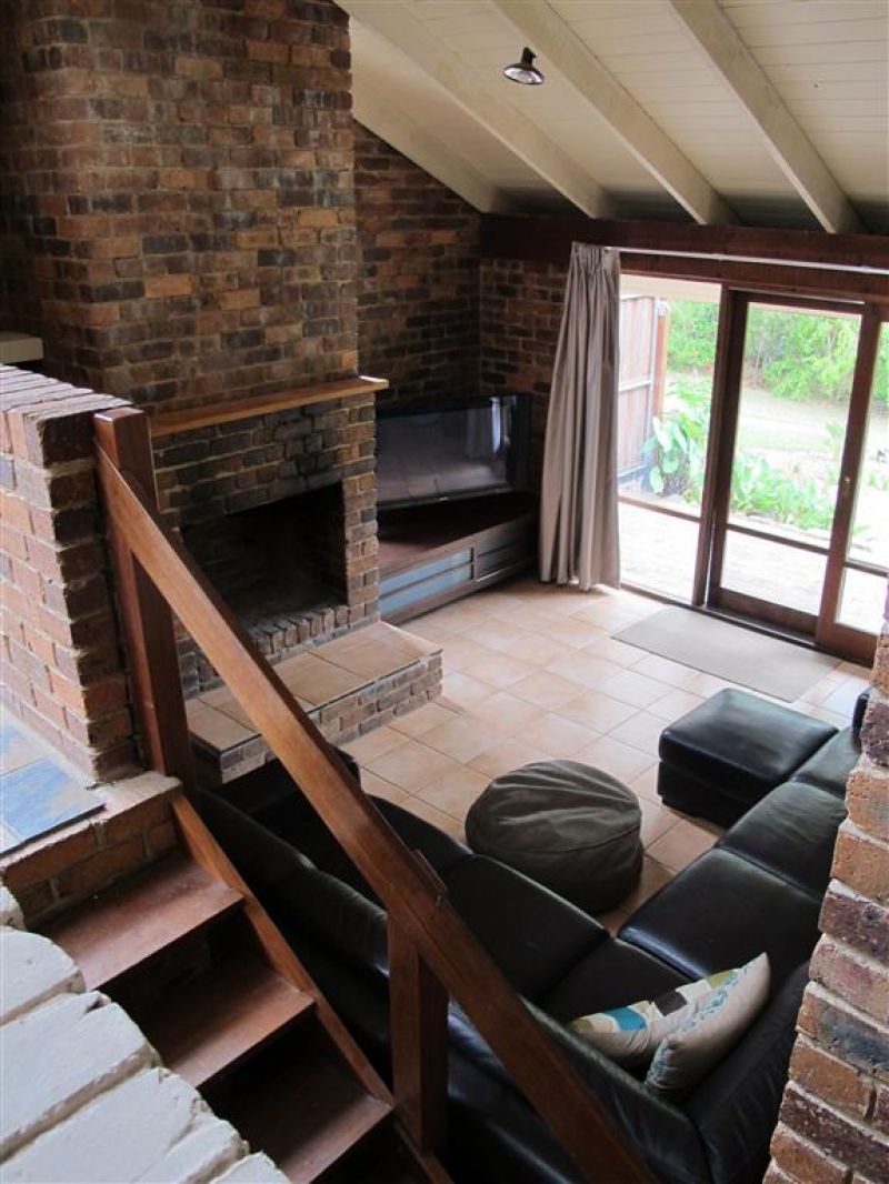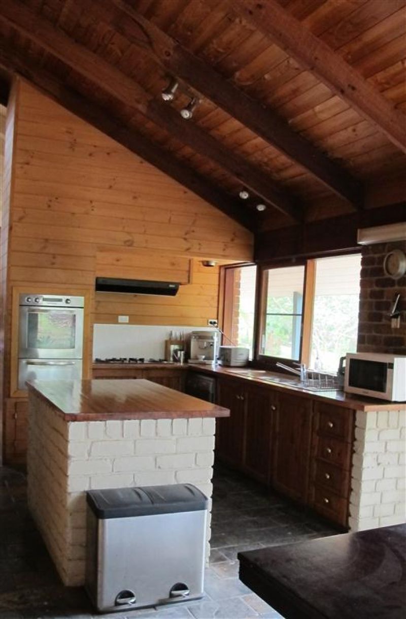 The home has brick feature walls, expensive slate floors, exposed cedar lined cathedral ceilings and an impressive open fireplace. The use of timber throughout creates a warm, inviting feel & includes feature walls, vanity units, benches and the kitchen.