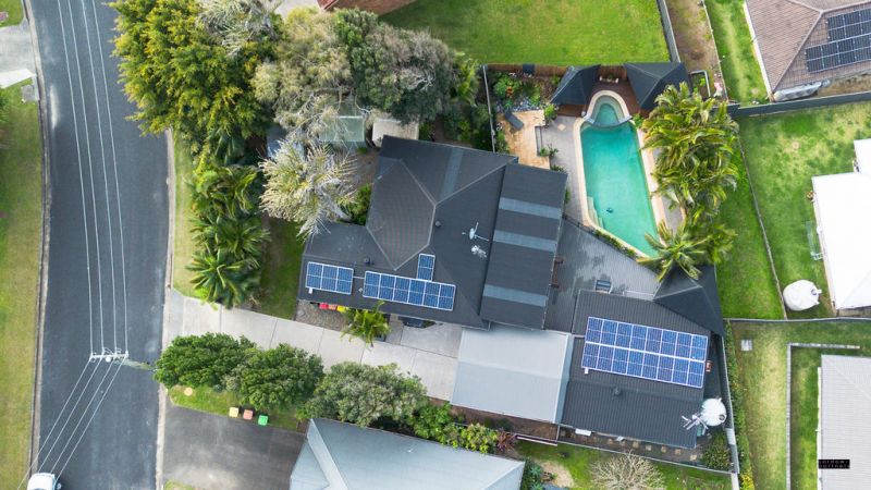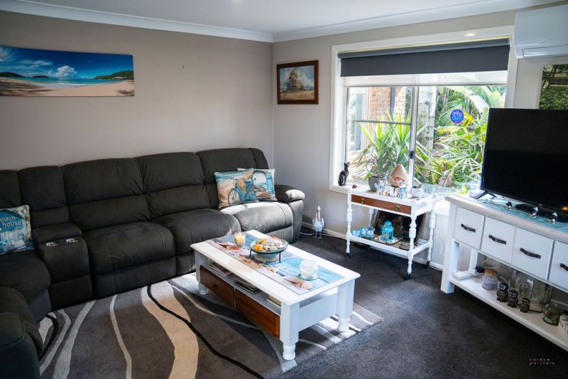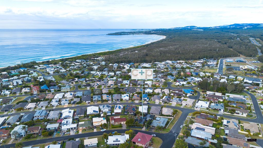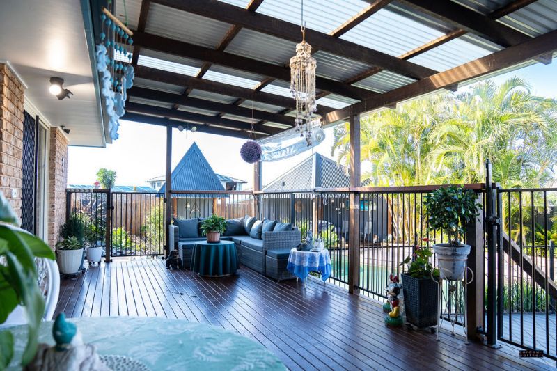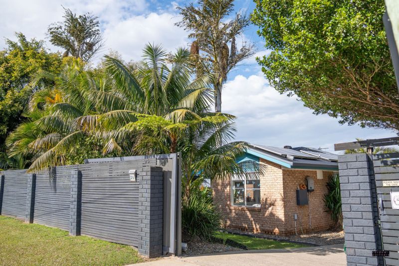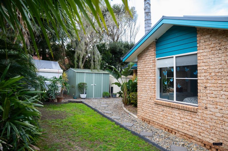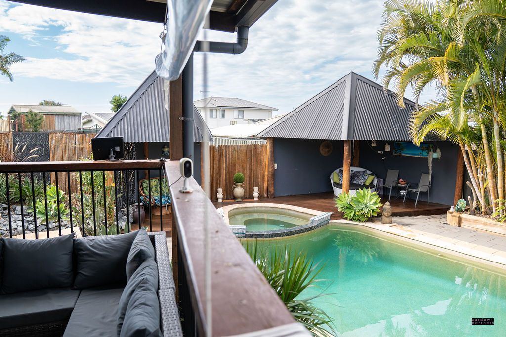 A tropical oasis has been built in the heart of Corindi Beach, on a large 843.2m2 (approx.) block with sparkling swimming pool with spa, well maintained two bedroom brick & tile home, large studio/office accom (partially approved) and fully fenced and private yard with auto sliding gate. You'll feel like you have stepped into a 5-star resort with established tropical gardens, gazebos with room for your daybed for poolside lounging, and an very generous elevated entertaining verandah overlooking the pool and spa.