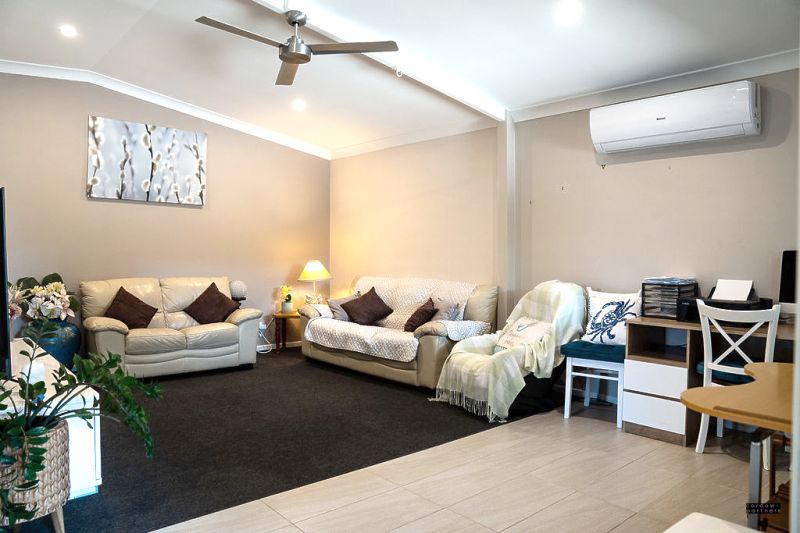 Recently updated it features two bedrooms with BIR's, LED lighting, some fresh paint, and updates to the kitchen. The kitchen and living space all flow through to the entertaining deck, while the bathroom offers a separate WC, and adjacent laundry with outside access.