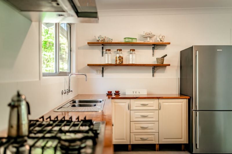 The house offers open plan living (6.8m x 6.1m) with a good size kitchen area offering a gas stove, timber benchtop and good cupboard space. The rear wall of the living area consists of windows and a glass sliding door that and leads directly to the rear entertainment deck offering those lovely views of the trees that give a feeling of peace and privacy, so sought after with our busy lifestyles.