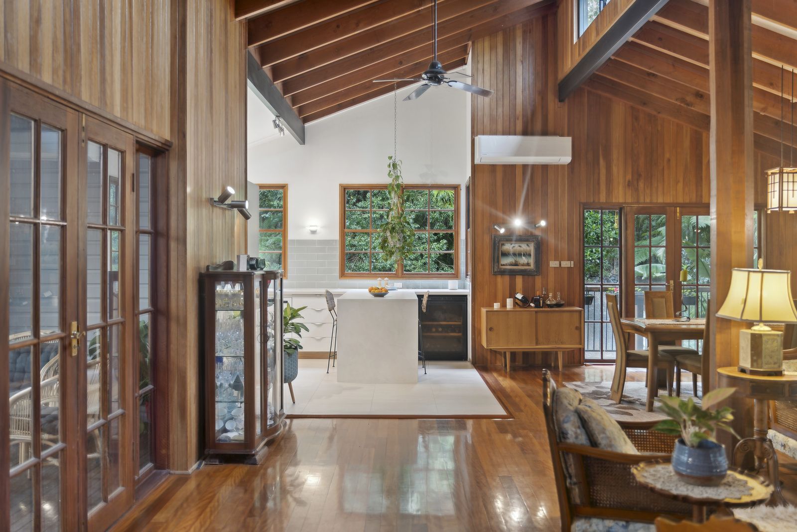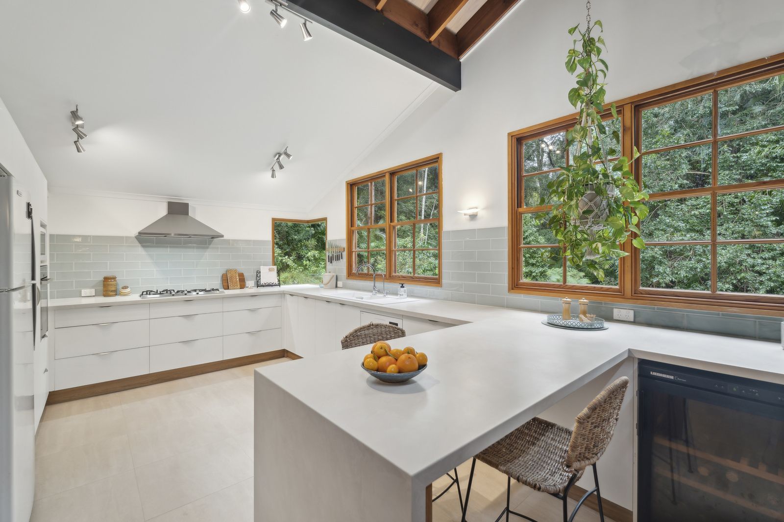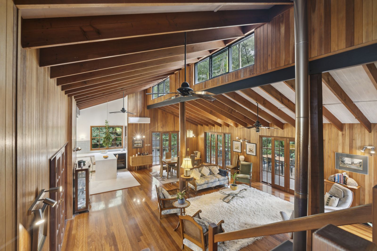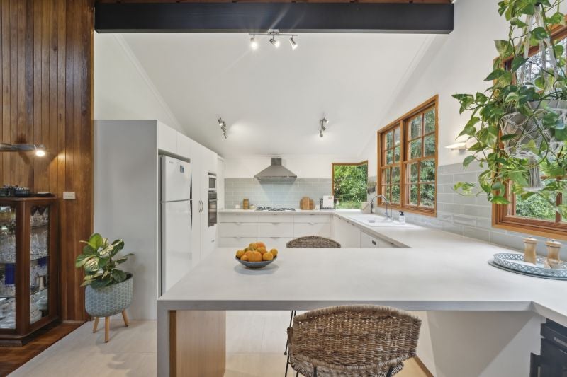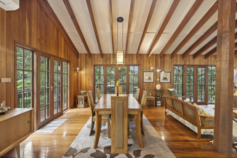 Oregon timber stairs connect four expansive levels, each exuding its own unique character, including high-set windows that usher in the sunlight. At the same time, soaring ceilings amplify the sense of space and tranquillity, seamlessly blending the modern kitchen, dining, and living areas that enhance the ambience. Choose from a variety of outdoor spaces to relax or host gatherings, all designed to keep you connected to the beauty of nature.