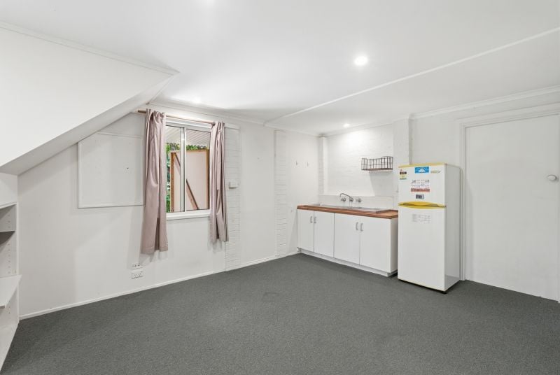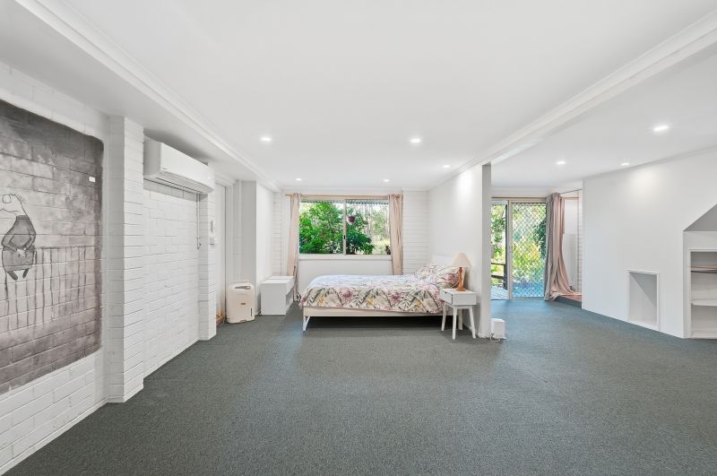 Downstairs offers a versatile studio space, ideal for guests, extended family, or a teenager's retreat. This area includes a separate room and bathroom, providing flexibility for a variety of living arrangements.