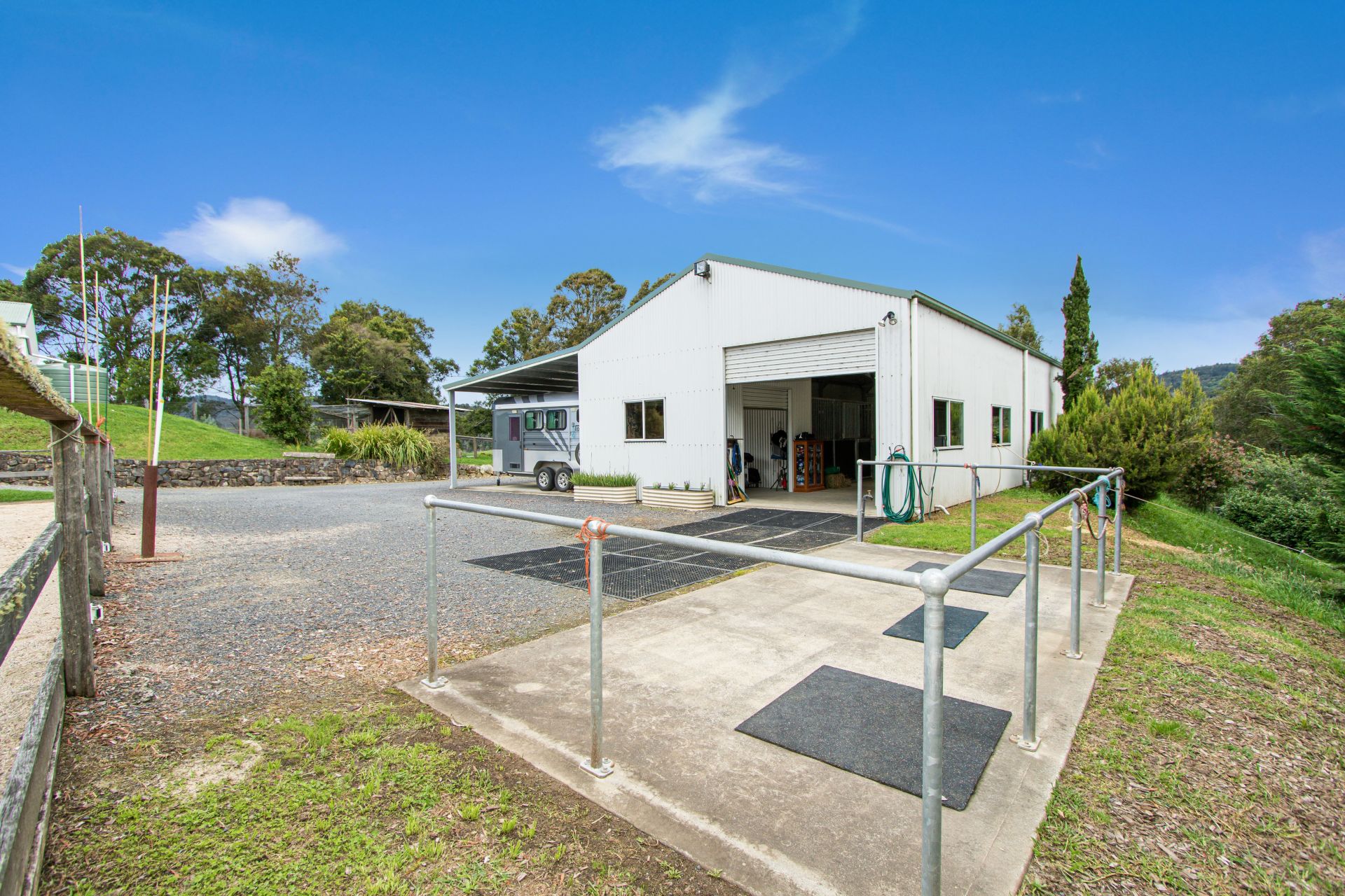 Step inside and appreciate the welcoming open plan living room, showcasing the modern kitchen, dining area and lounge, and warm timber floors, which blend seamlessly with the wrap-around veranda. Beyond the spacious living area, you discover the four bedrooms complete with built-ins and the main bedroom with an en-suite, bathroom and an office/fifth bedroom. Additional highlights included - equine facilities: 3 x 4m x 4m Stanric stables with seamlessly sealed rubber matting and inbuilt drains, tack shed, wash bay, and a four-bay skillion off the stables for tractors, horse floats and caravans. Full-size sand arena with a sprinkler system, a separate round yard, and a garage/machinery shed with parking space for four cars. There are also five fenced paddocks, a foaling paddock with shelter, a chicken pen/run, a variety of fruit and nut trees and raised garden beds. The address is conveniently located 15 minutes from Dorrigo, a regional centre with supermarkets, cafés, restaurants, entertainment, schools, and a local hospital. Nestled on the edge of the Great Divide, it enjoys a cooler climate year-round that is a gateway to the Coffs Coast, New England Tablelands, beautiful World Heritage National Parks, stunning waterfalls, bush walks, camping and fishing.