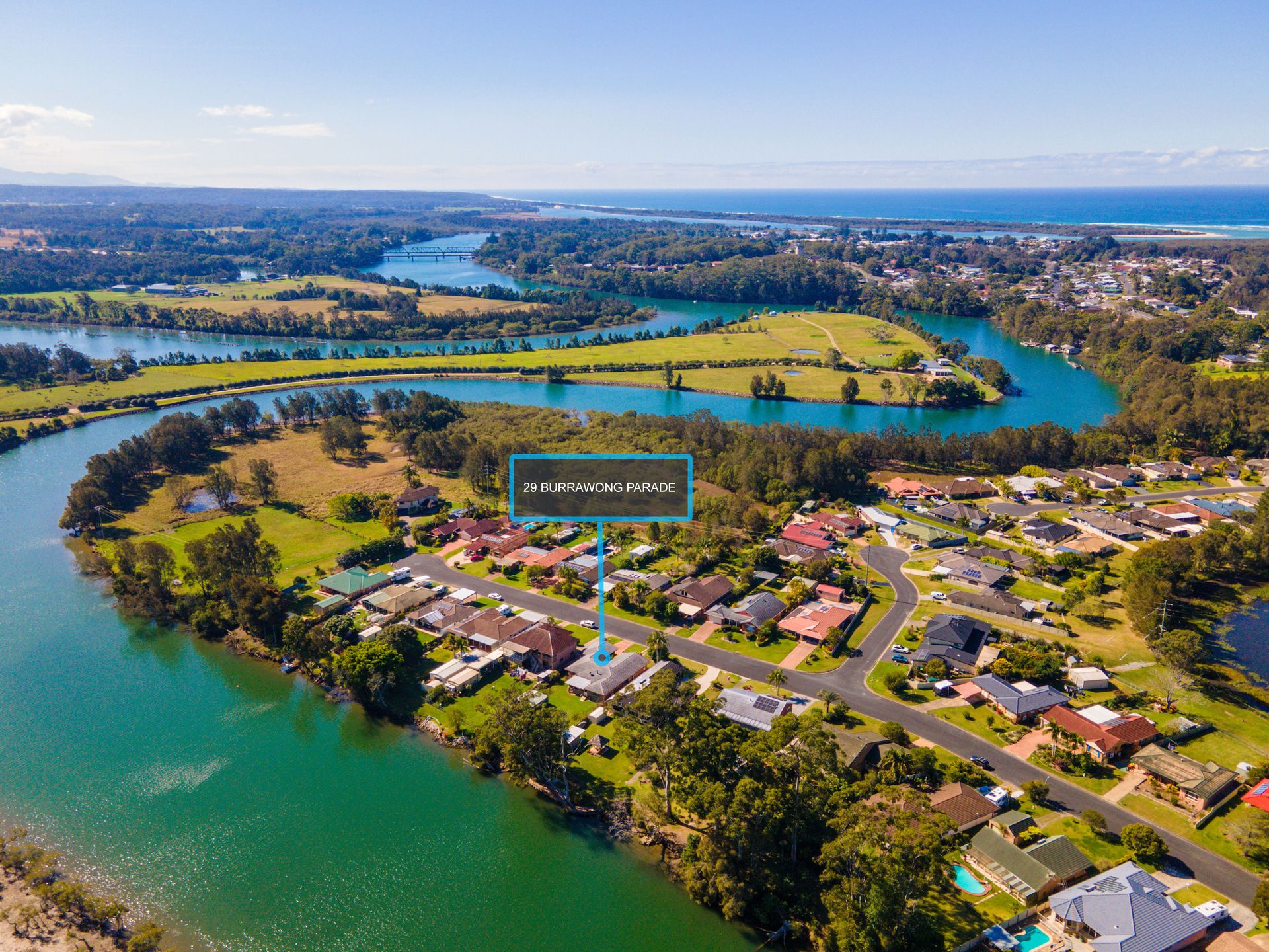 Beautifully presented, this solid brick family home offers a unique opportunity to secure the ultimate waterfront and coastal lifestyle, in a much sought after location. Imagine starting your day with a coffee overlooking the pristine Kalang River. This fantastic home has been designed for indoor-outdoor living, sliding glass doors connect the open-plan kitchen, living and dining to the covered alfresco entertaining area. The spacious kitchen/dining area will surely impress with stone bench tops, dishwasher, air conditioning and cozy wood fireplace.