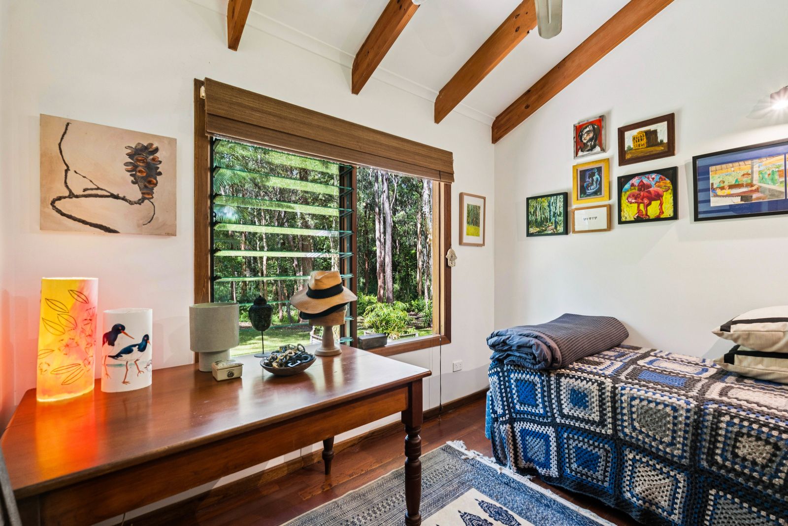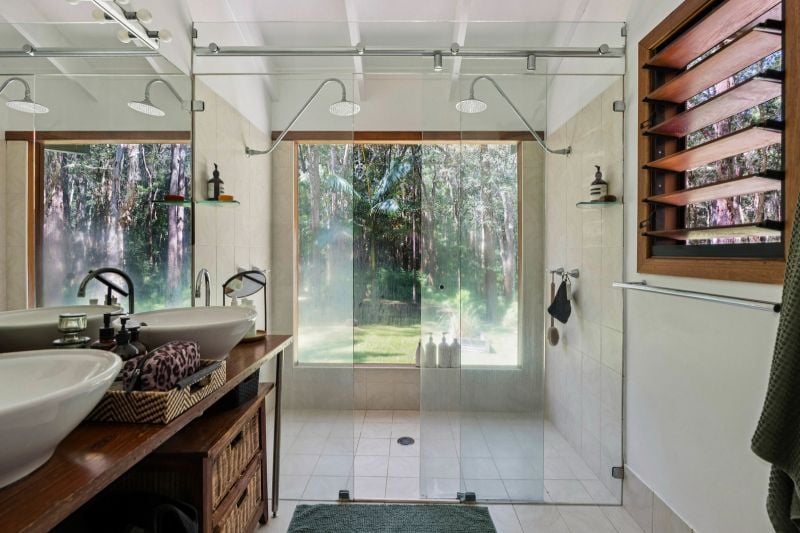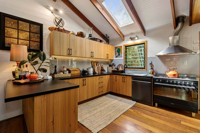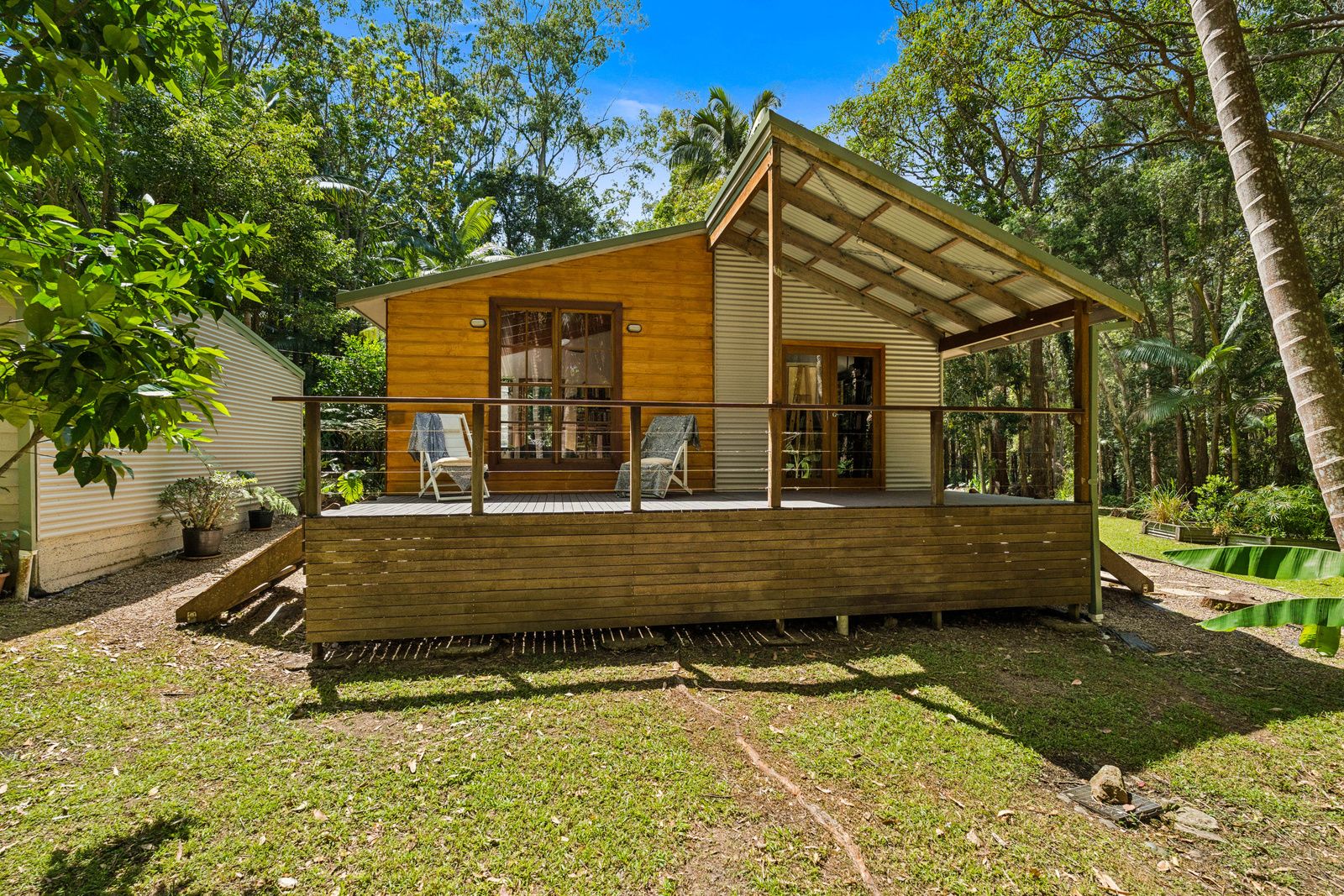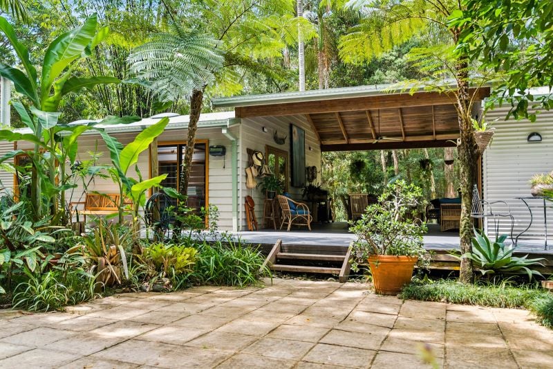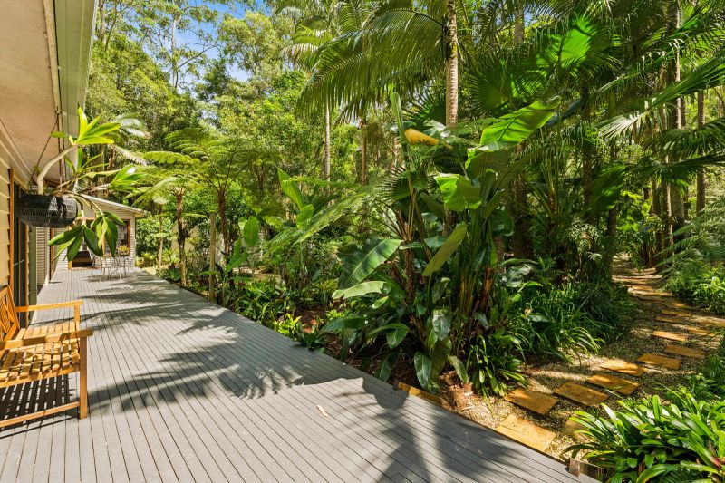 Tucked away at the end of a quiet cul-de-sac, just a short drive or bike ride from the pristine beaches and meandering rivers of the Bellinger Valley, this property is a peaceful haven immersed in lush tropical gardens. The setting exudes calm and privacy, creating a sense of escape from the everyday.