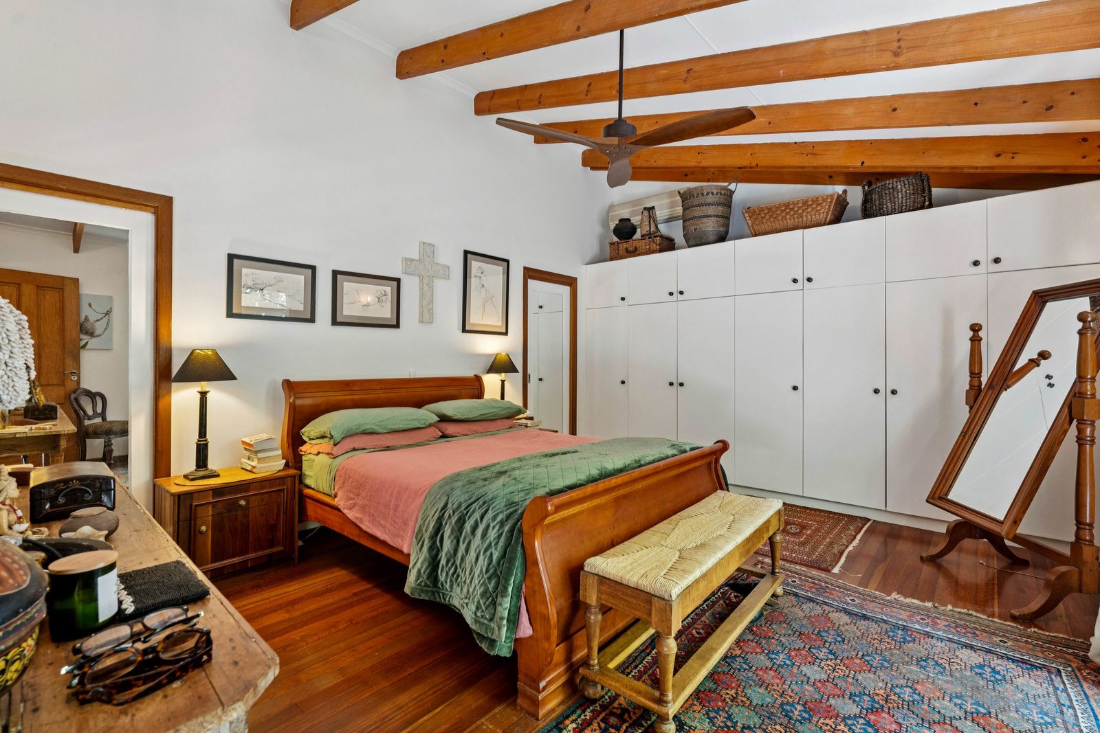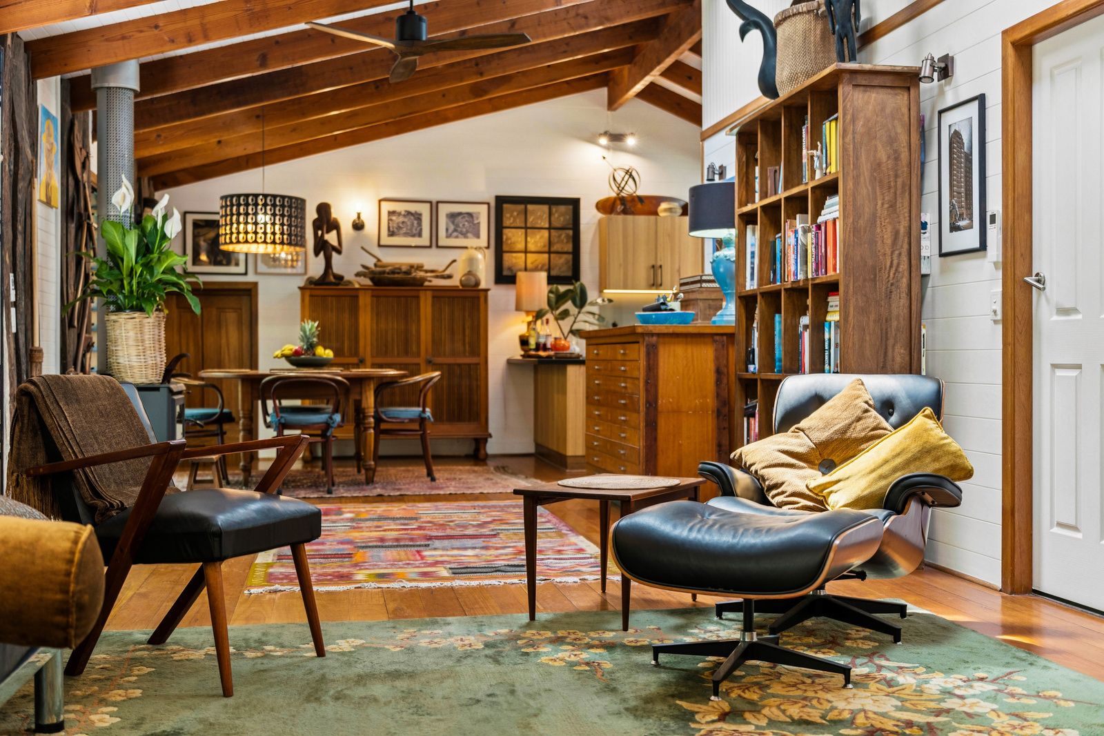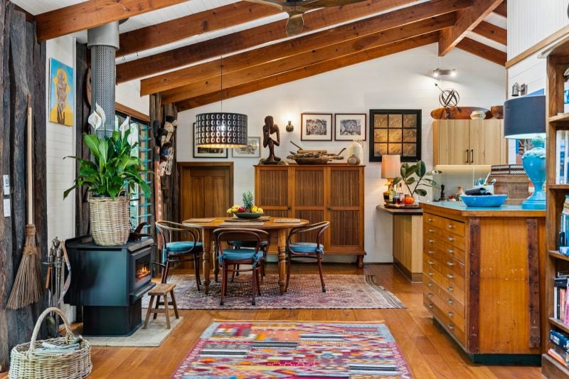 The first pavilion is warm and welcoming, featuring an open-plan living, dining, and brand-new kitchen with quality finishes. Timber floorboards, air conditioning and a slow-combustion wood heater add natural charm, while a bedroom and bathroom complete this space. The second pavilion offers a peaceful master suite with ensuite, an additional bedroom or office, air conditioning, and built-in storage. The third pavilion provides flexibility-ideal as a bedroom, studio, creative workspace or a possible self contained unit/Air BnB.