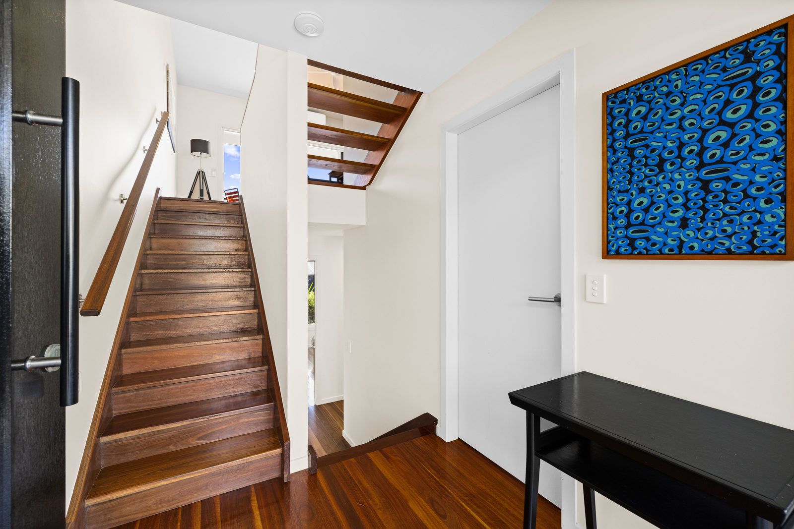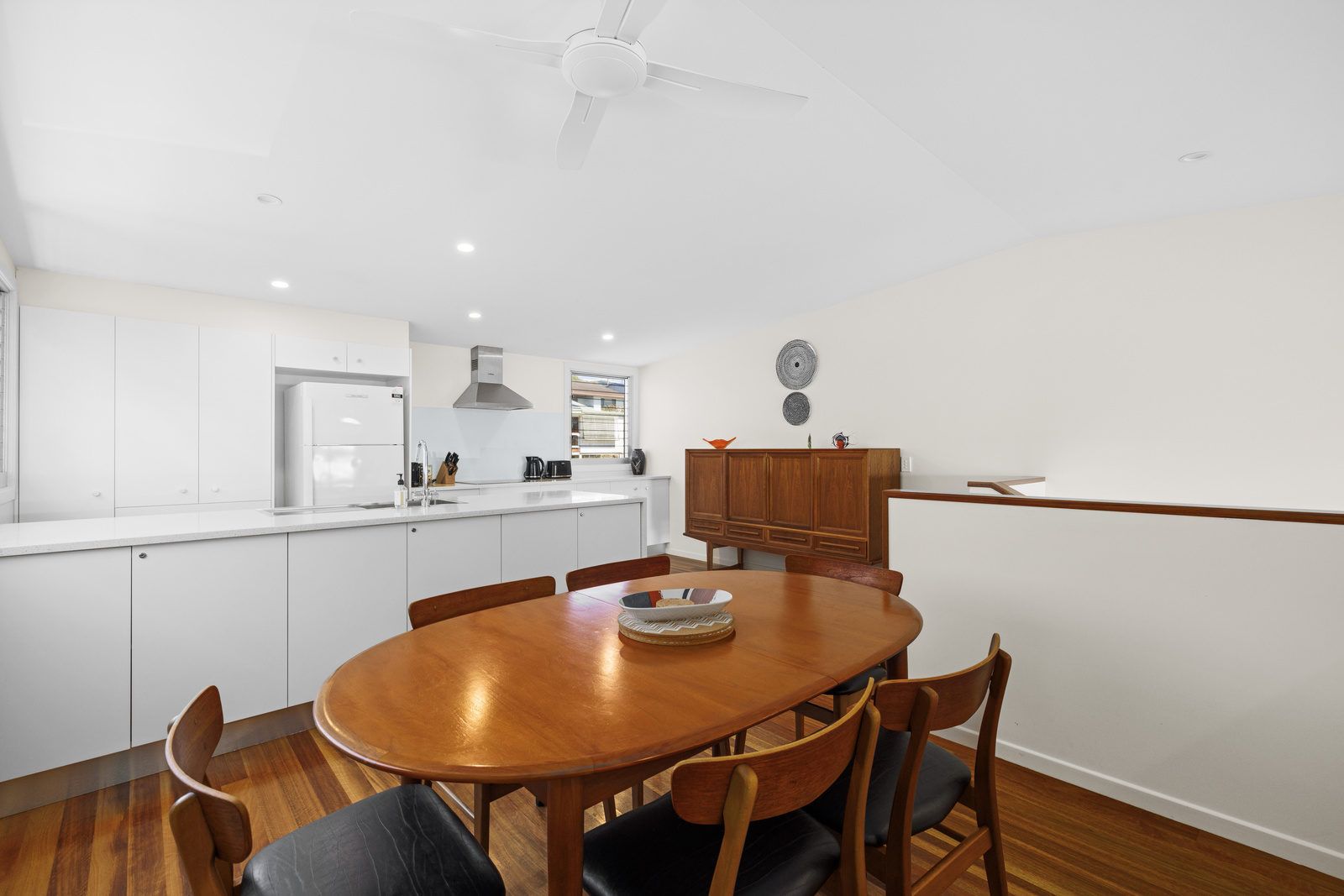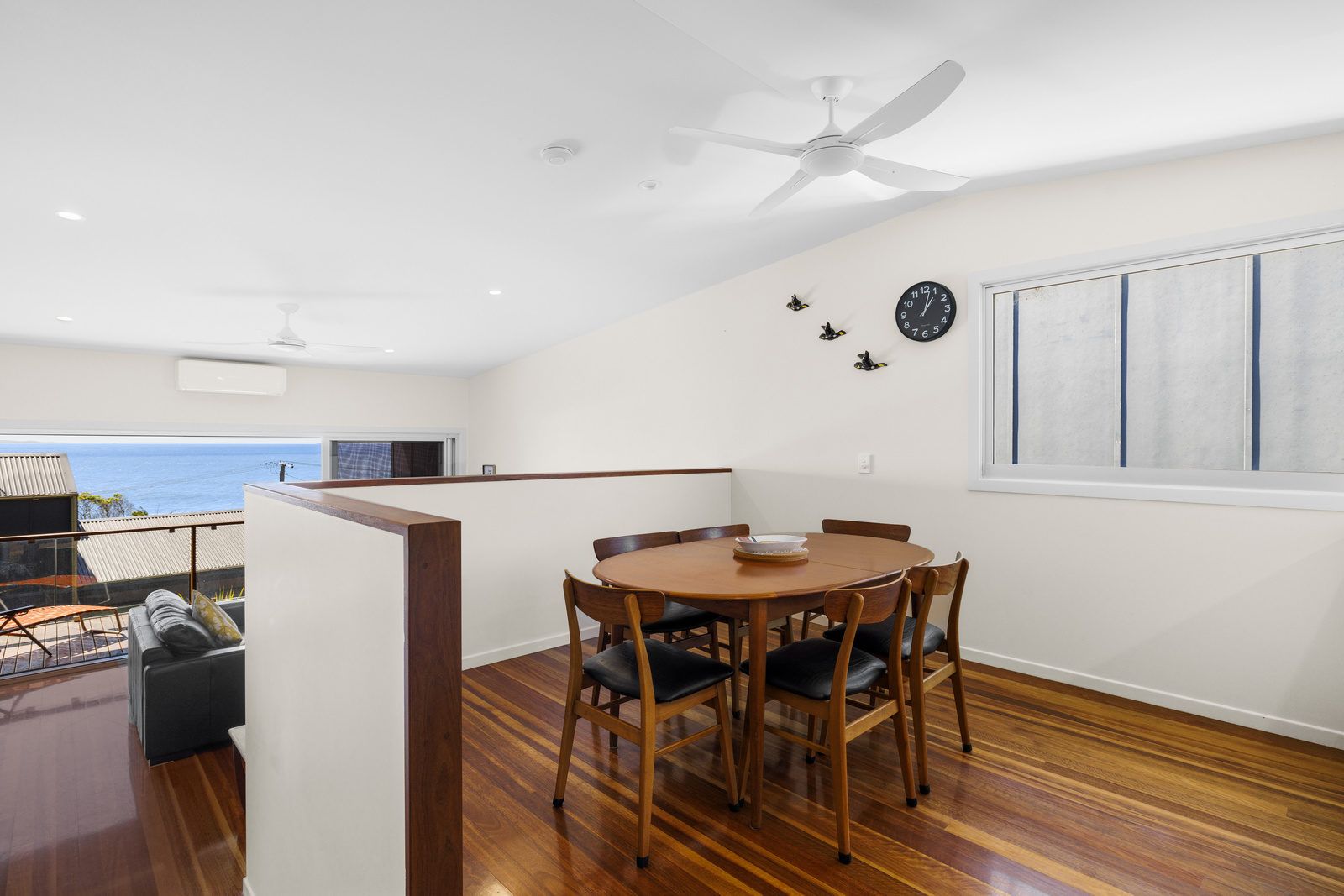 On the ground level you will find one bedroom with two single beds, ceiling fan & built-in robe. Following the few steps down to the lower level of the house you will find the main bedrooms which offers a queen bed, ceiling fan & built-in robe. On this level is also the laundry & spacious bathroom.