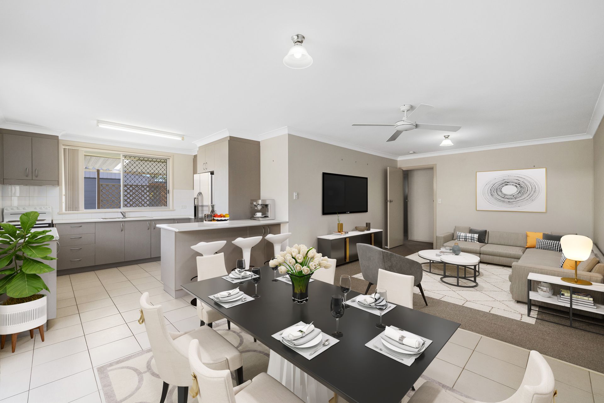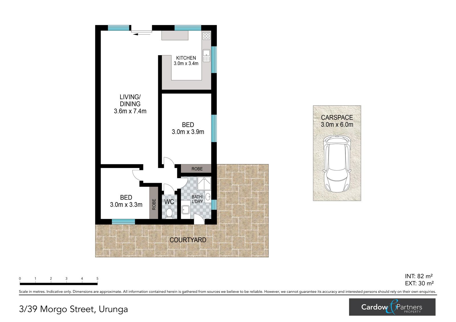 Set in a quiet complex of 4, the unit offers an inviting open plan lounge, dining & kitchen area with air conditioning, modern functional kitchen, 2 bedrooms - both with built in wardrobes, main with air conditioning & combine tiled bathroom/laundry with separate toilet.