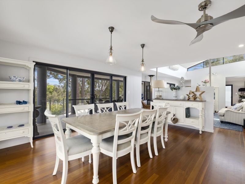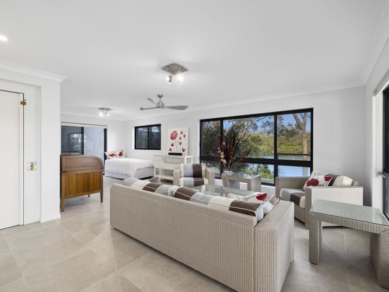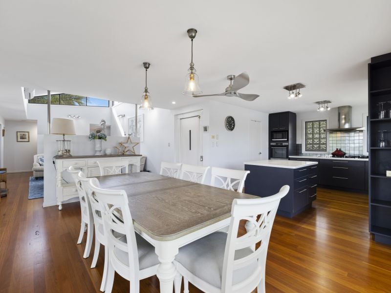 Set in a private enclave, this highly desirable property embraces the scenic waterfront of the Kalang River and beyond. The floor plan features multiple living spaces on two levels accessed by an internal lift and stairs. Entering the welcoming home via the foyer to the first level, you will discover three bedrooms, a master with ensuite & walk-in-robe, the light-filled living room with slow combustion wood heater, timber floors, high ceilings and A/c. The kitchen and dining seamlessly flow indoors/outdoors, creating an irresistibly inviting sitting area capturing engaging views and making this a wonderful place to dine with family & friends. Move downstairs to the fourth bedroom with ensuite lounge room & storage with direct access to the in-ground pool. The property also showcases a double remote garage, solar, laundry and remote shutters. The exceptional lifestyle offers a place to enjoy fishing, kayaking, boating or water sports at your front door. This property is only a short drive to picturesque surf beaches north and south of the seaside Village of Urunga. Coffs Harbour is only 20 mins away or the charming town of Bellingen 7 mins to the west. Call today for a private inspection