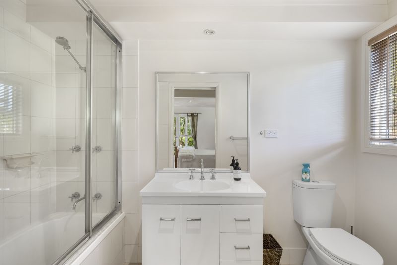 Upstairs the home offers a lovely leafy outlook with mountain views from the entertaining deck. Inside you will note a cohesive neutral tones throughout the home. Comprising of 2 bedrooms, open plan lounge, dining & kitchen area, complete with reverse cycle air conditioning, modern kitchen including gas cook top and dishwasher.
