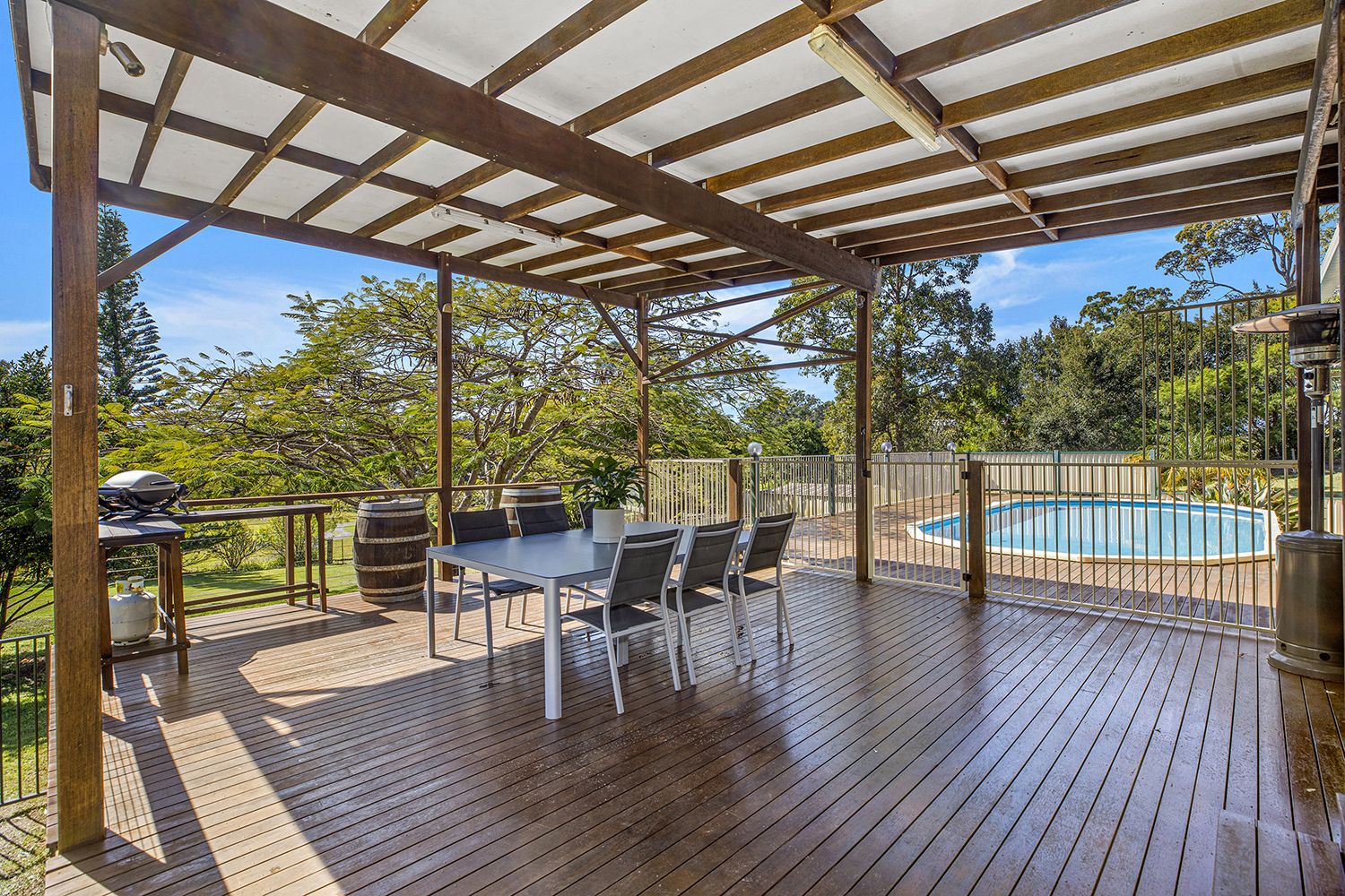 Set on a beautiful 1 acre block with a sunny northerly aspect, the home boasts a spacious covered entertaining deck with peaceful views & a sparkling above ground pool.