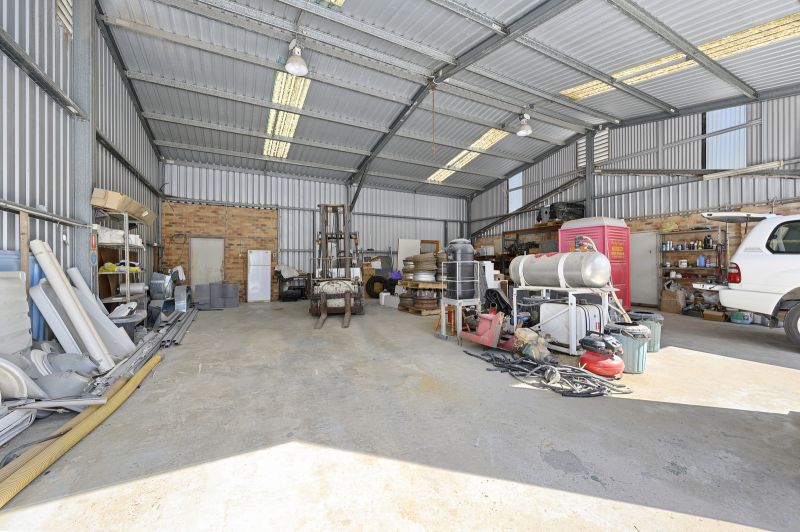 Approximately 12 x 12 metre 2 bay shed positioned to the front of the block allowing for further extensions to the rear if needed. 2 bedroom brick and tile residence at the front and fully fenced yard. Available to purchase as vacant possession this opportunity is perfect for you to move your current business into and rent out the front residence for extra income.