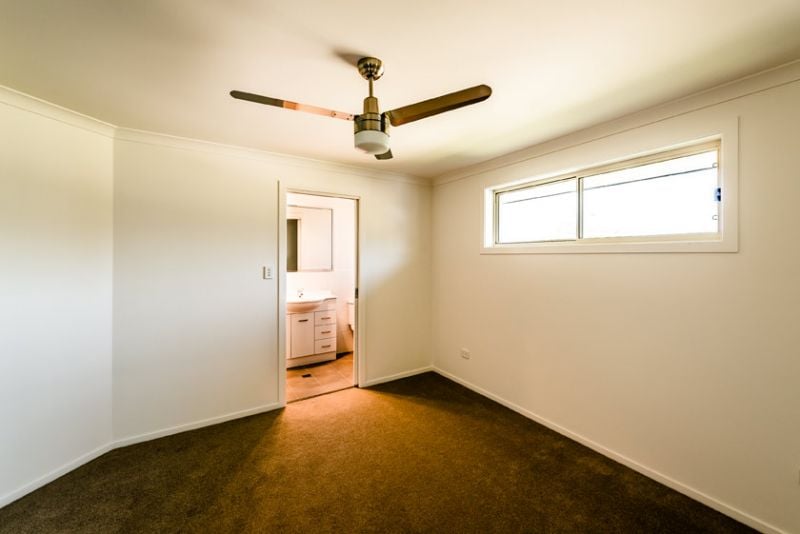 The main bedroom (3.6m x 3.5m) offers an outlook to the rear yard, has walk in robe, ceiling fan and ensuite with a generous sized shower, vanity, WC and exhaust fan.
