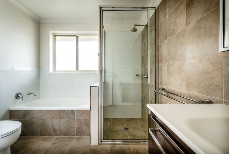 The main bathroom is modern and stylish and offers a separate bath & shower, there is a vanity, and exhaust fan.