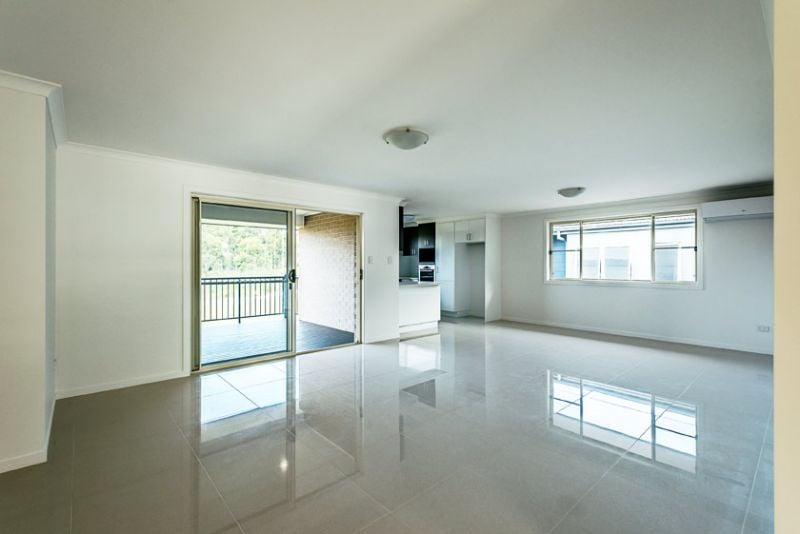 The kitchen offers electric stove & oven, dishwasher & a double stainless steel sink, it looks out over the backyard. The open plan living room is air-conditioned and incorporates the lounge, dining and kitchen areas. This area has plenty of light and fresh air via glass sliding doors and windows, designed to allow a cross-flow of air and cooling summer breezes and giving views over the backyard.