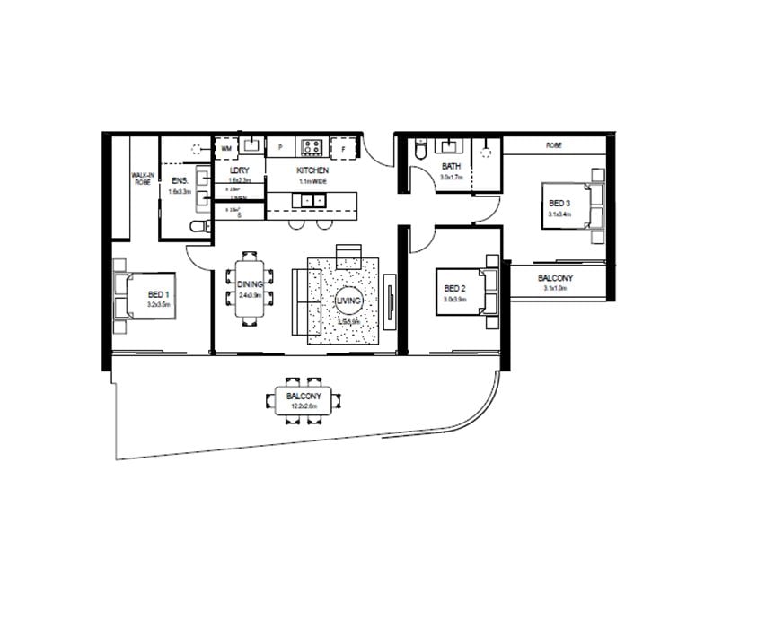 The spacious living and dining area flows seamlessly to a generous balcony, creating an ideal space for entertaining or unwinding. The modern kitchen features quality finishes and a practical design, while all three bedrooms include built-in wardrobes. The master is complemented by a stylish ensuite, with a second well-appointed bathroom servicing the home. Ducted air conditioning throughout ensures year-round comfort.